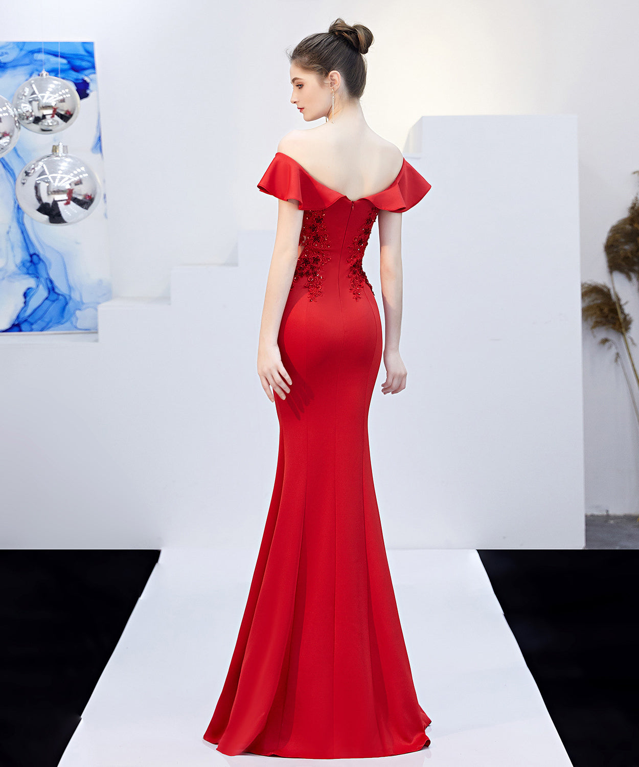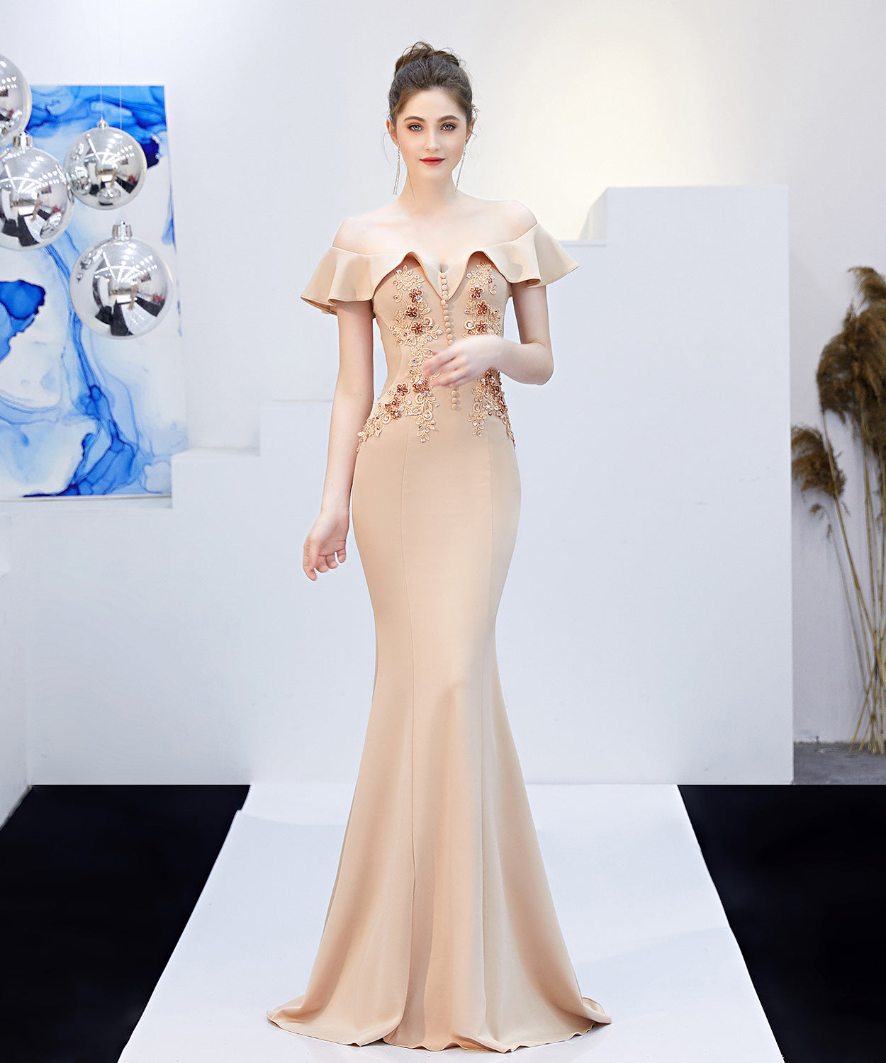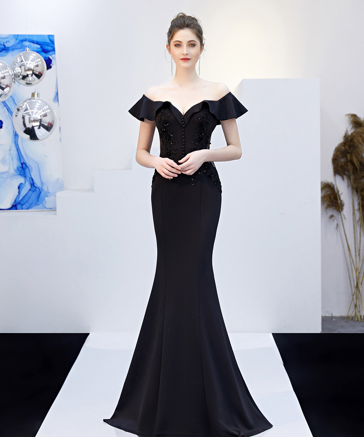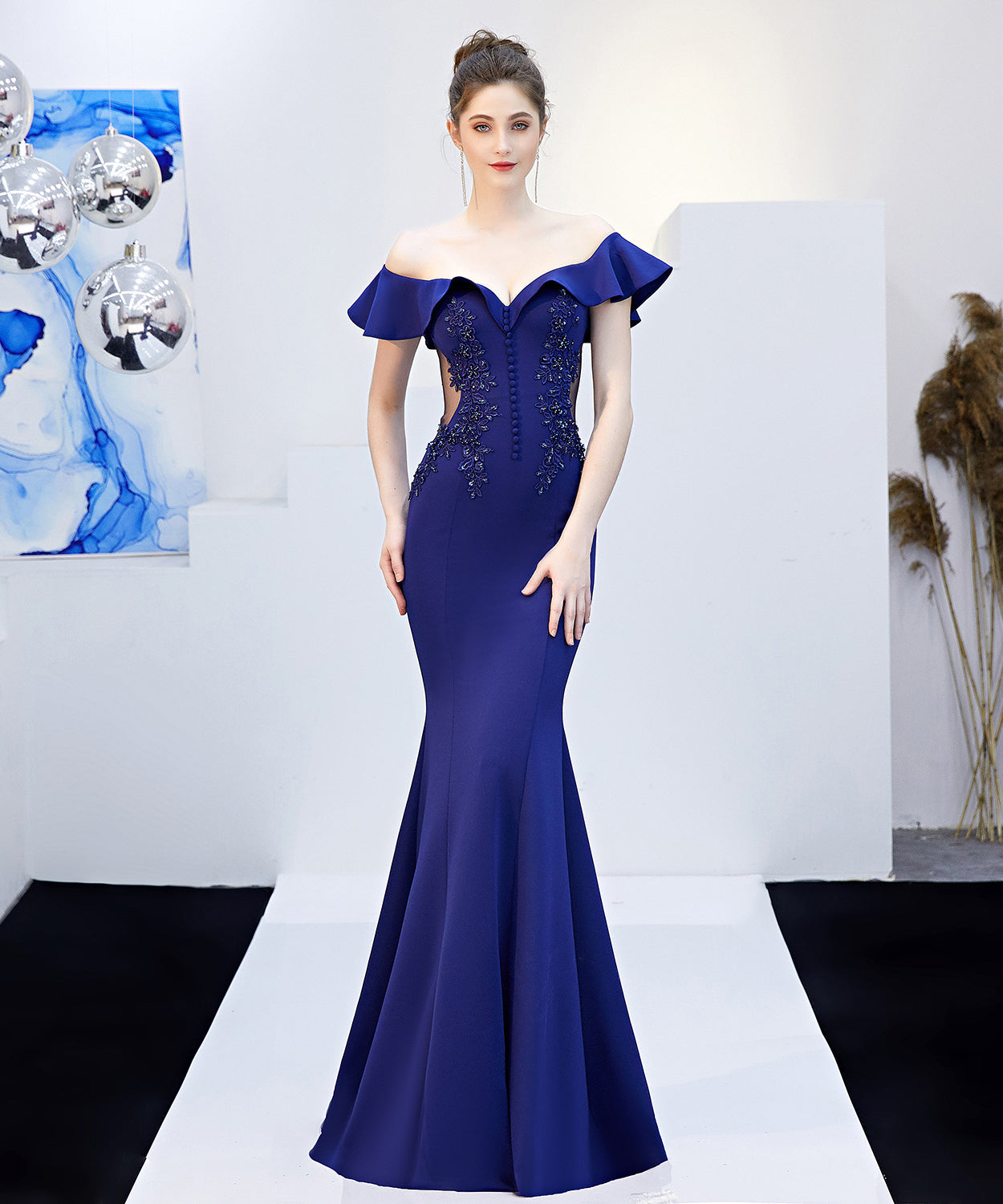 【6色】手作り バースデーロングドレス 宴会 パーティー 演奏会 オフショルダーフ キラキラ XH2-YEY16268#