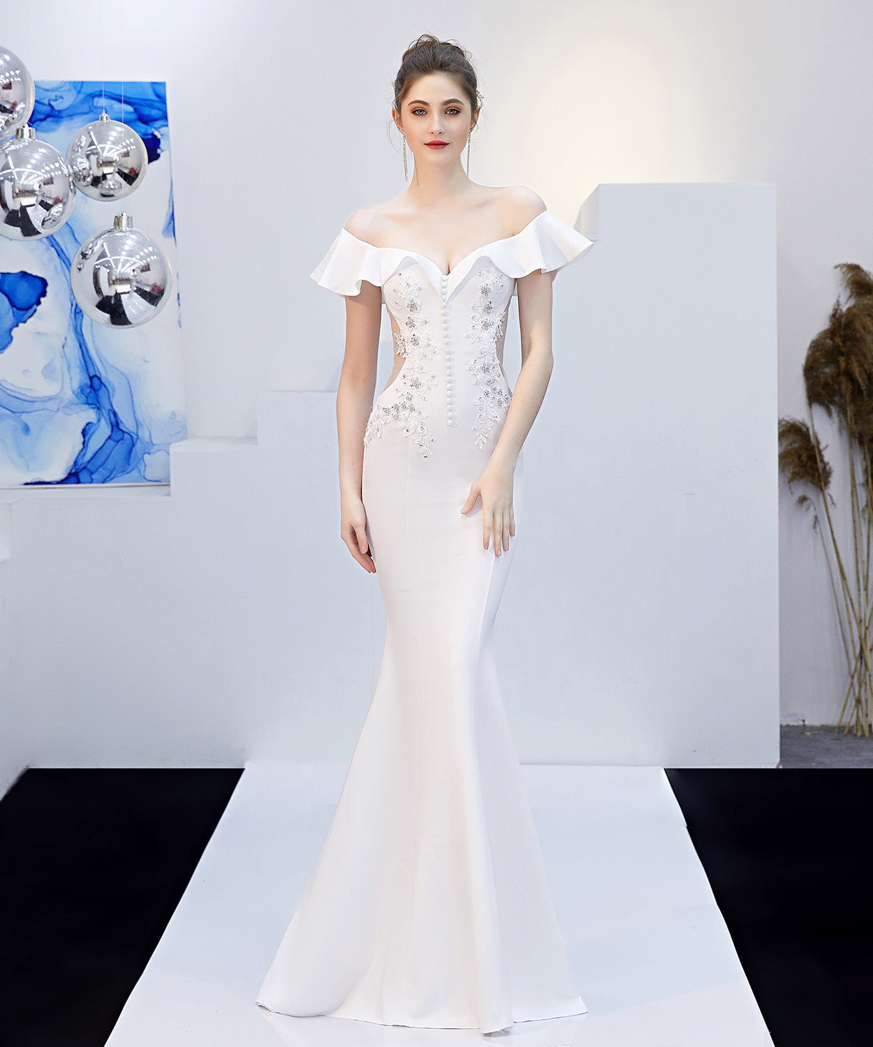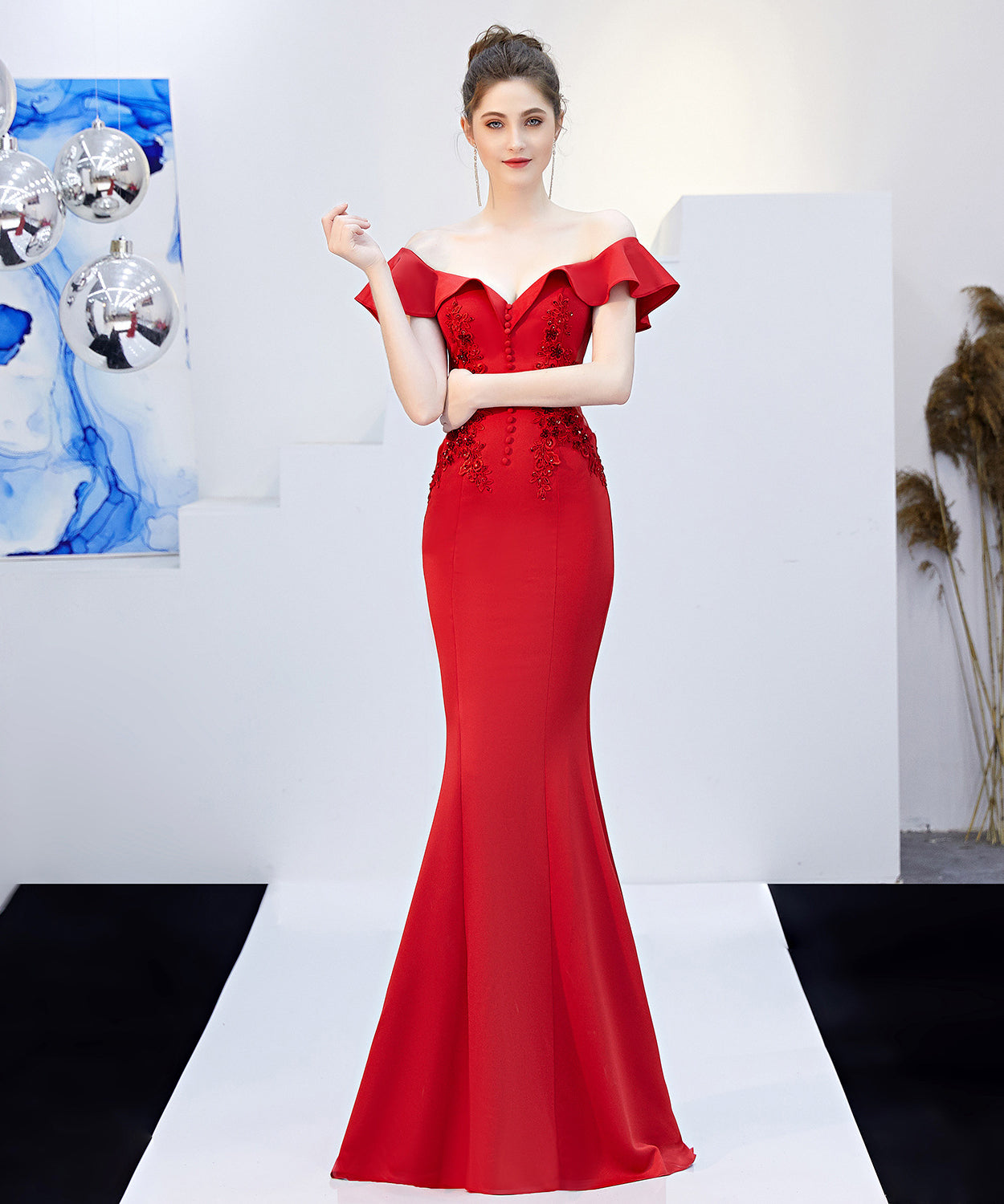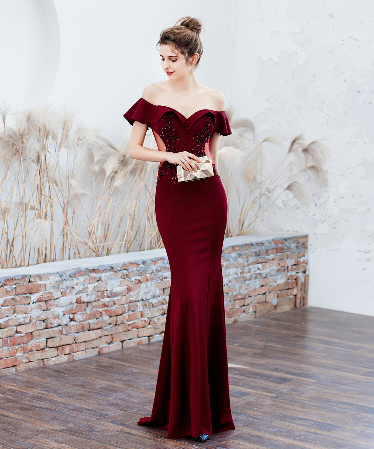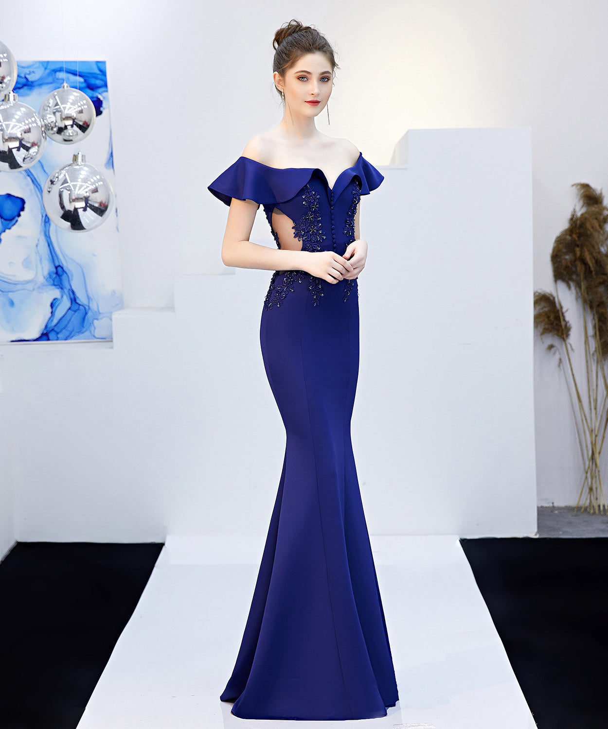 【6色】手作り バースデーロングドレス 宴会 パーティー 演奏会 オフショルダーフ キラキラ XH2-YEY16268#