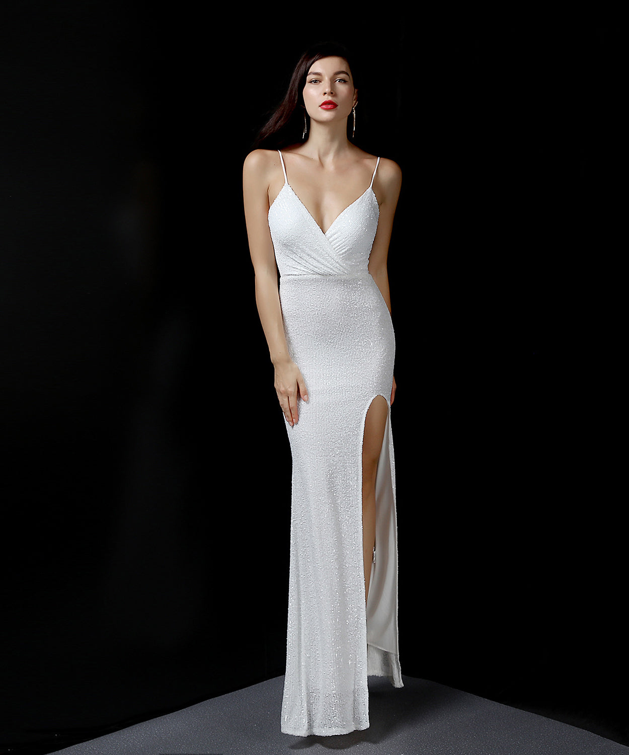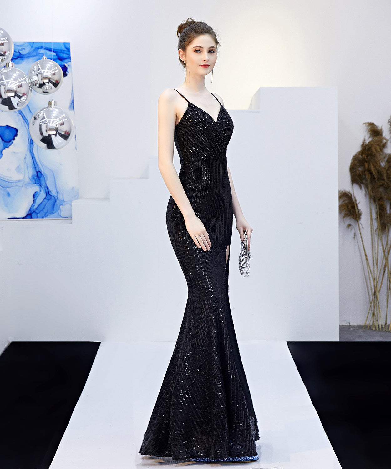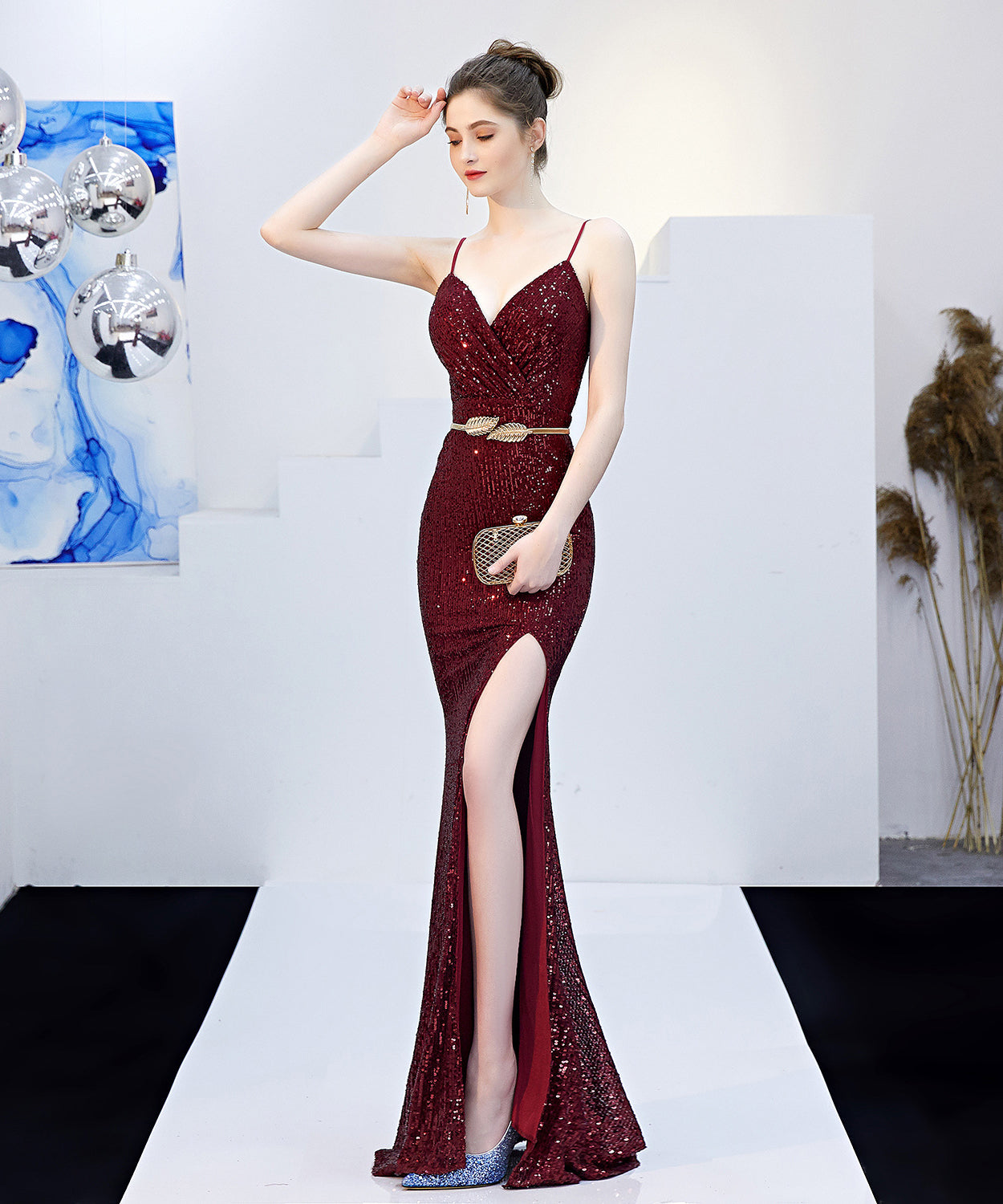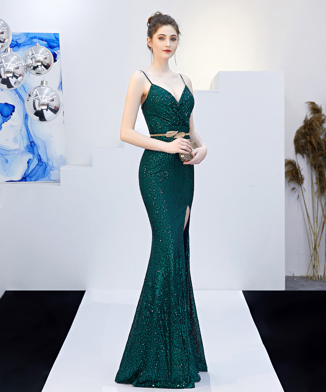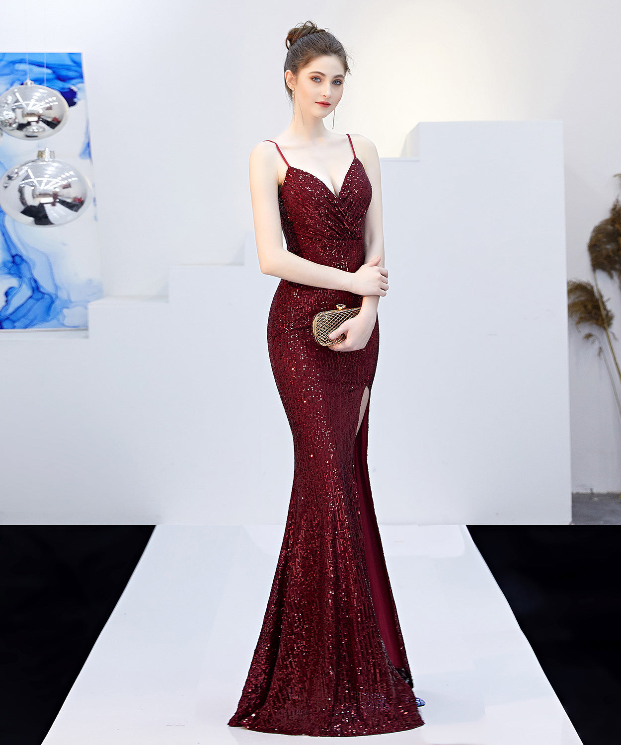 【7色】ロングドレス キラキラ Vネック 高級感 披露宴 宴会 マーメイドドレス YH2-YEY16276#