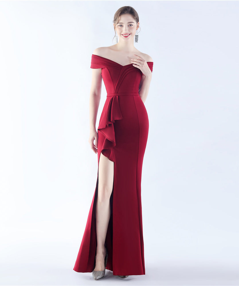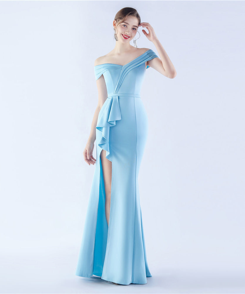 【7色】ロングドレス パーティードレス オフショルダー お姫様 誕生日 演奏会 宴会 XH2-YEY31239#