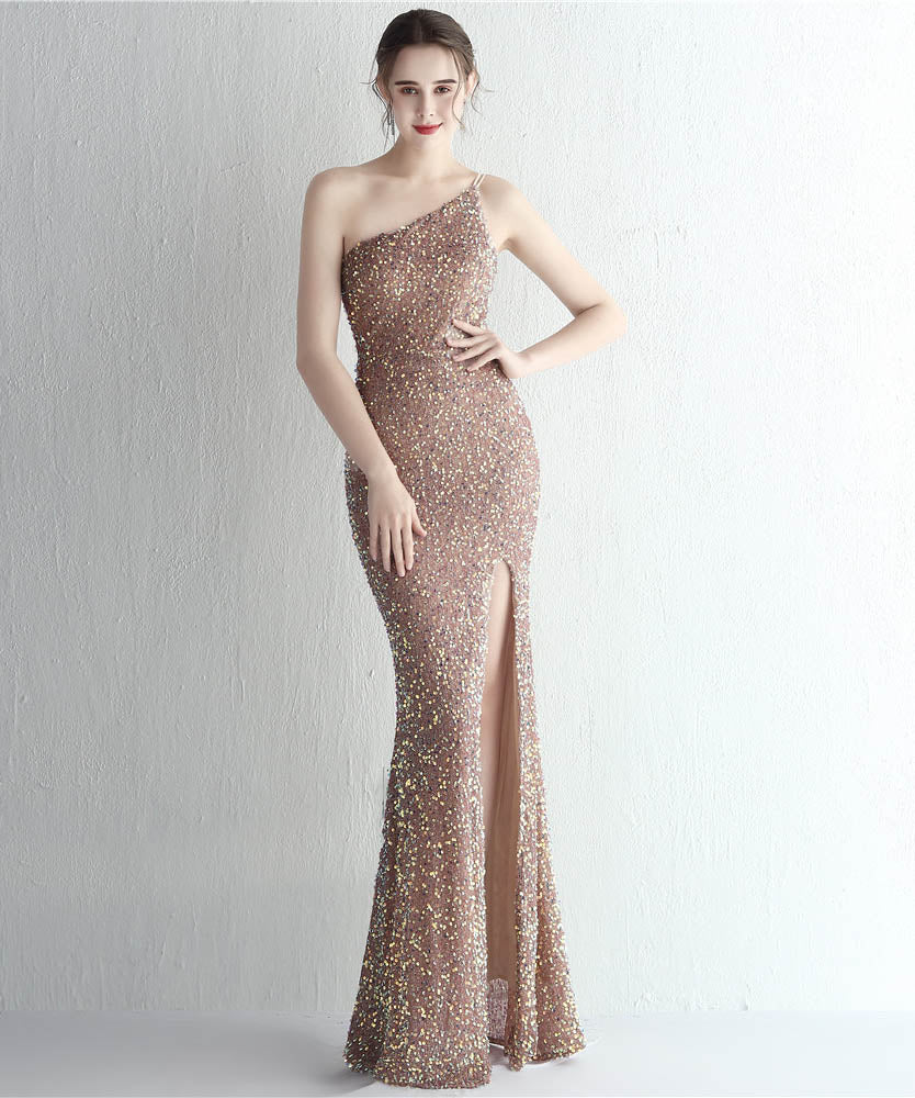 【8色】ロングドレス キラキラ パーティードレス ワンーショルダー お姫様 誕生日 演奏会 宴会 WQ2-YEY18900#