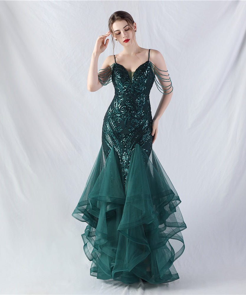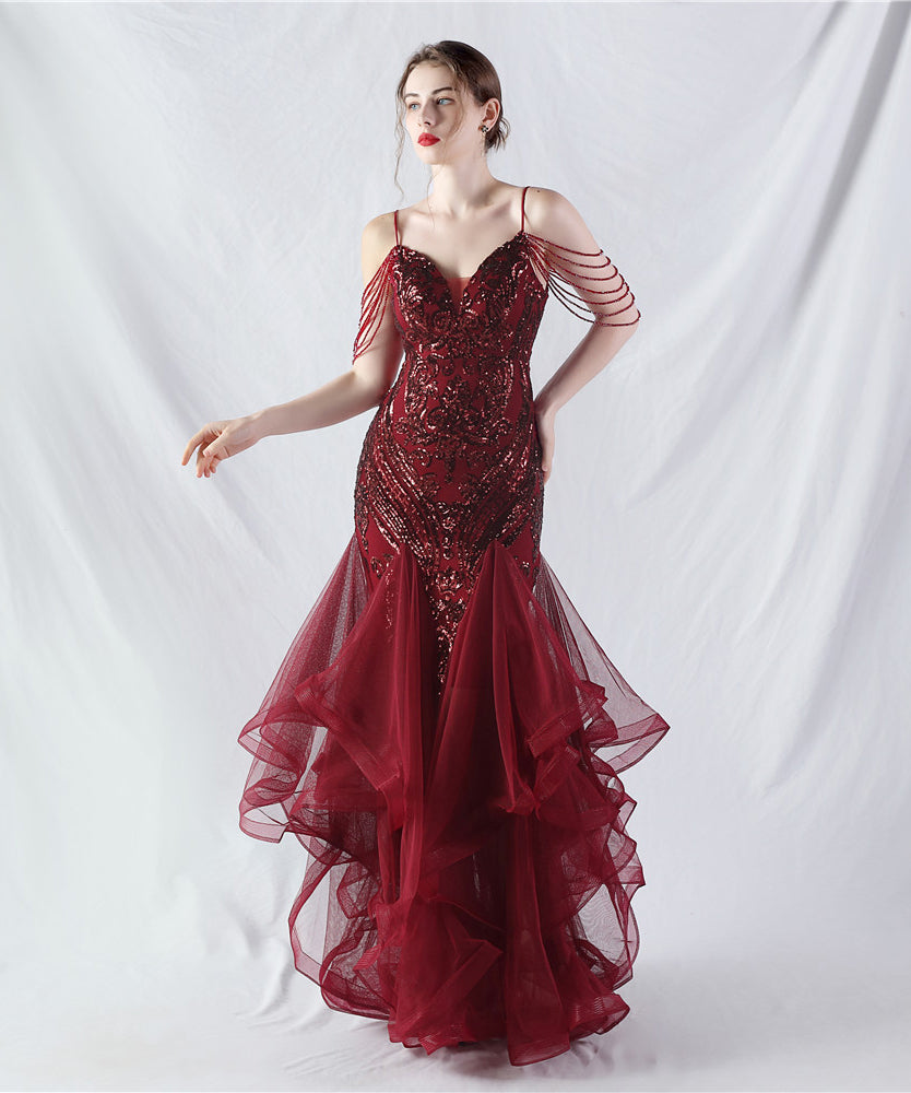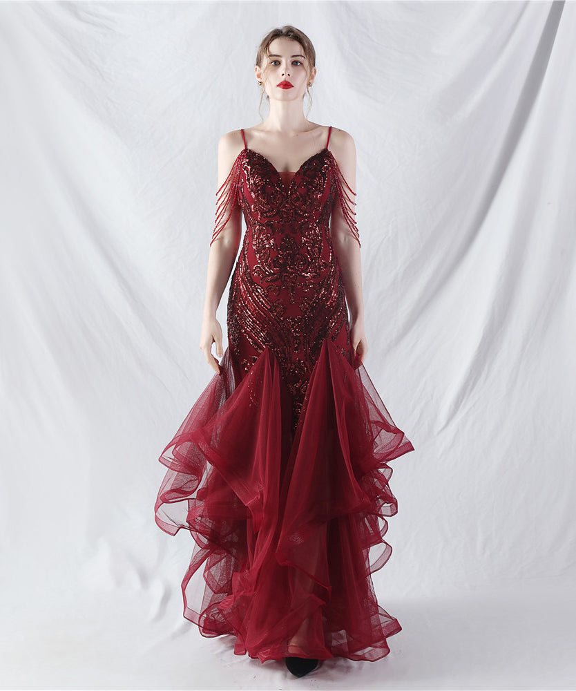 【8色】ロングドレス チュール ナイトドレス party キラキラ 宴会 演奏会 ベアトップ セクシー お姫様 XH2-YEY31982#