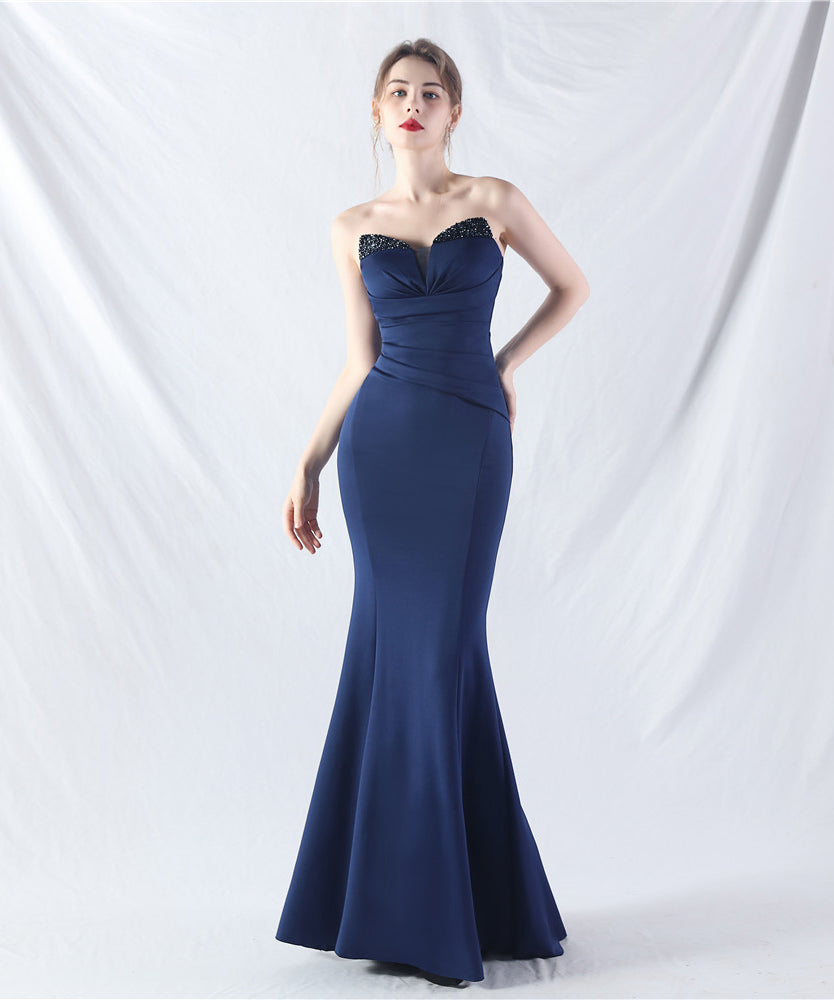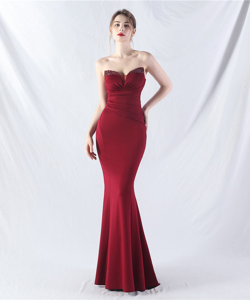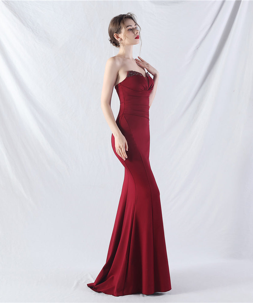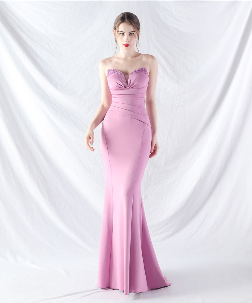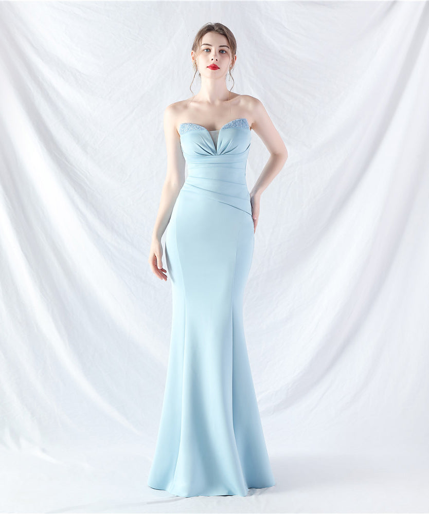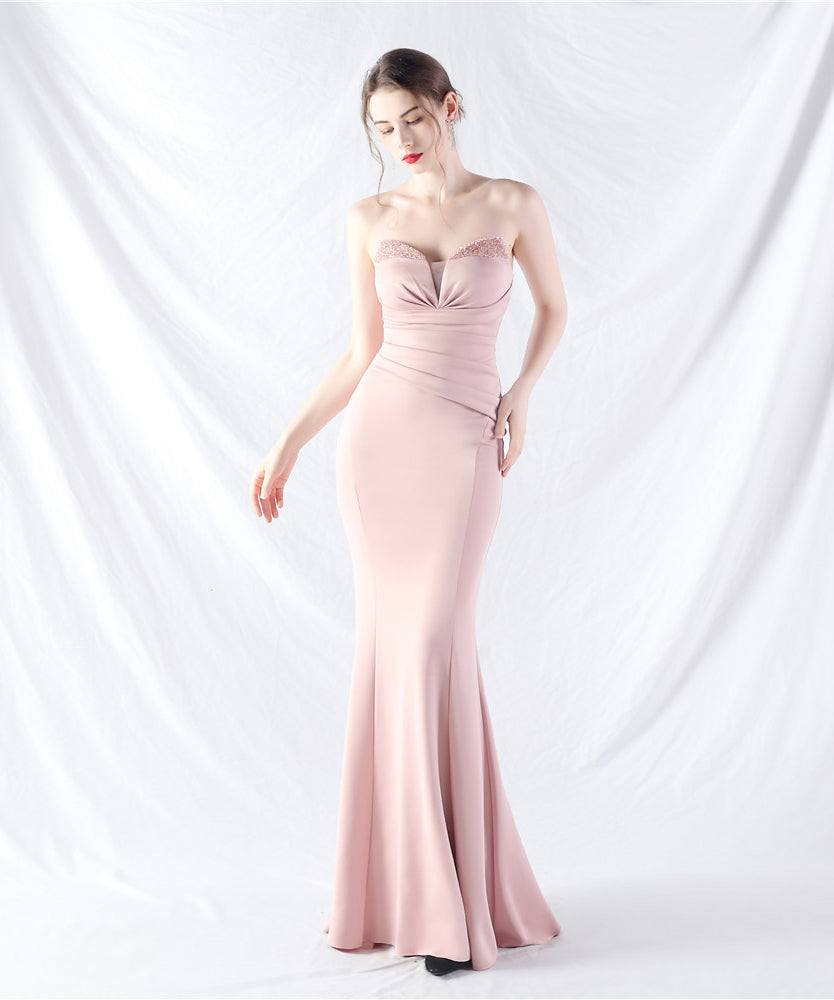 【8色】ロングドレス ナイトドレス ベアトップ 華奢感 キラキラ 宴会 演奏会 誕生日 XH2-YEY31978#