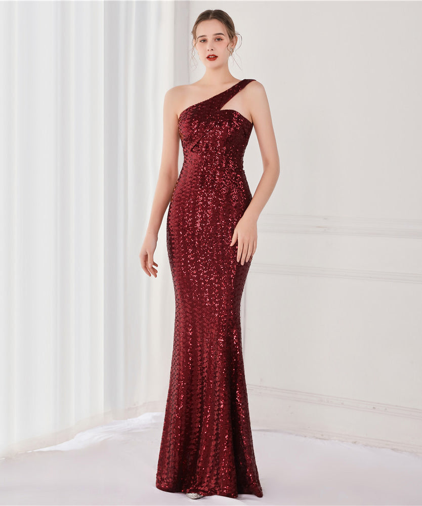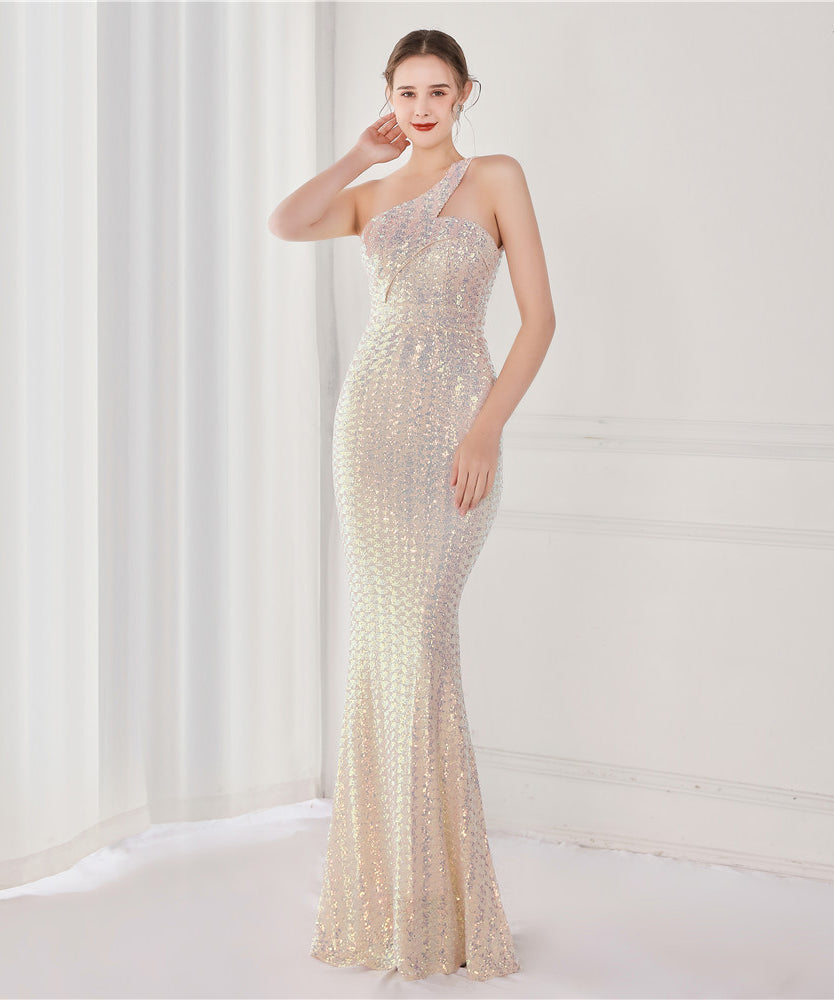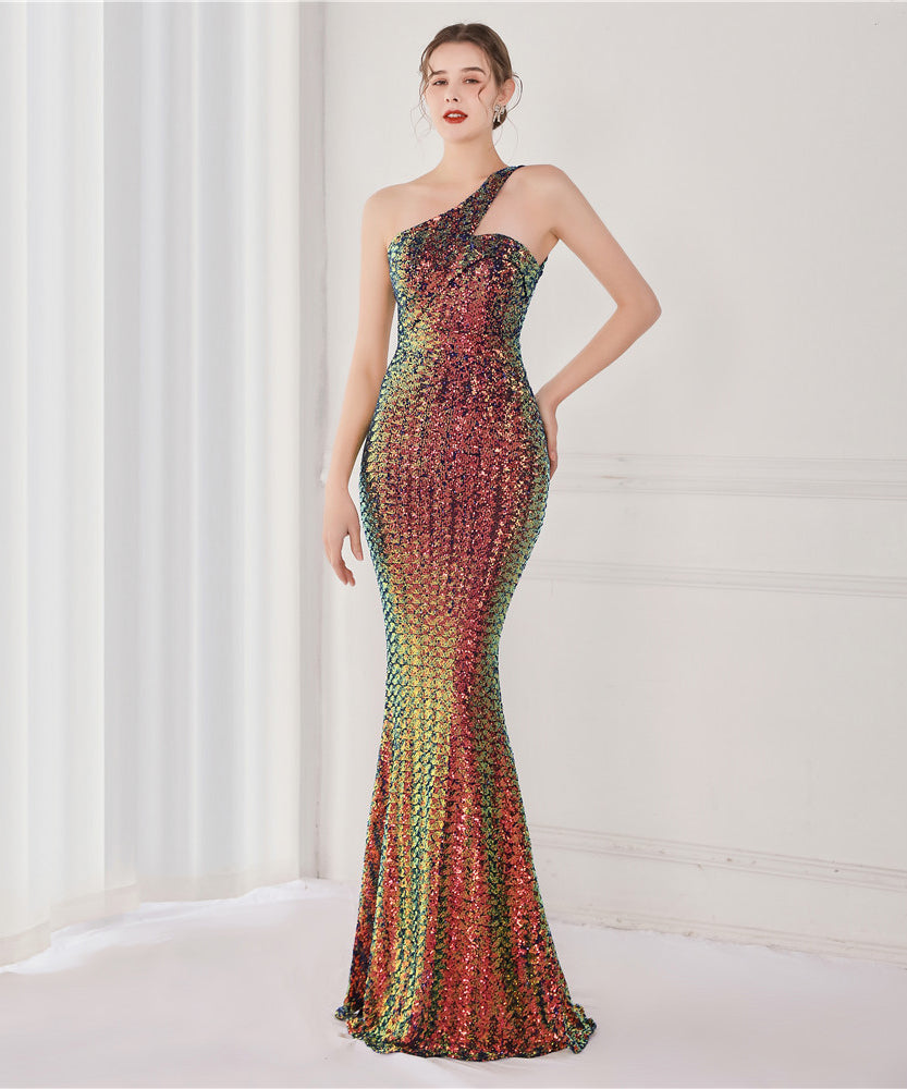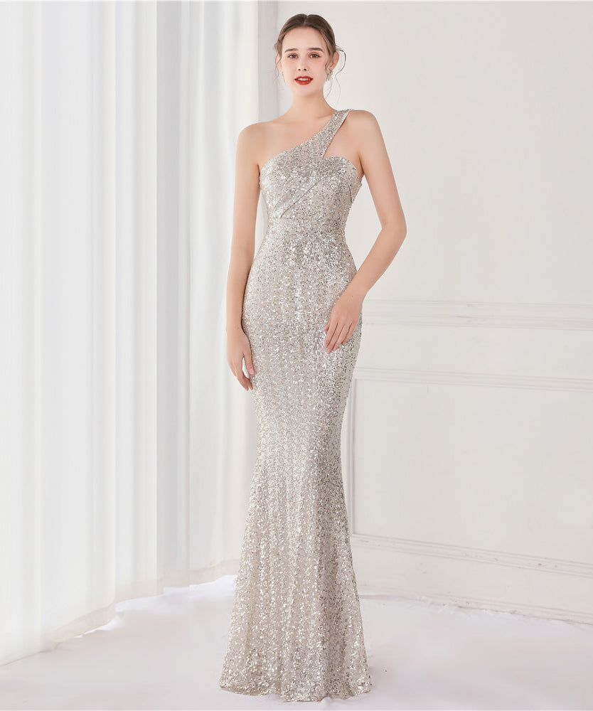 【8色】ロングドレス 高品質 キラキラ ナイトドレス 宴会 ワンショルダー 演奏会 XH2-YEY18891#