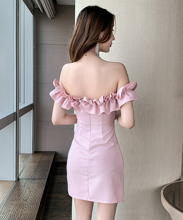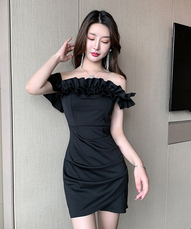 【black&pink】ミニドレス キャバドレス セクシー オフショルダー フリル XH2-DD3403