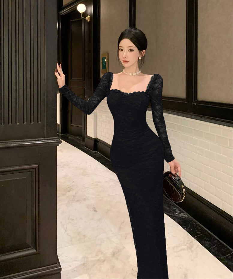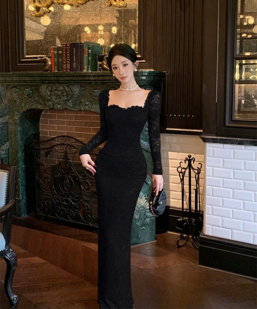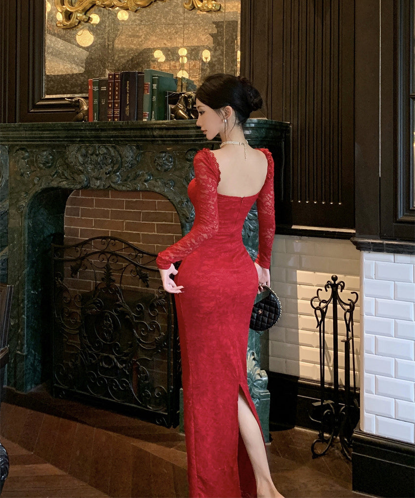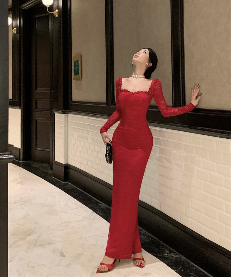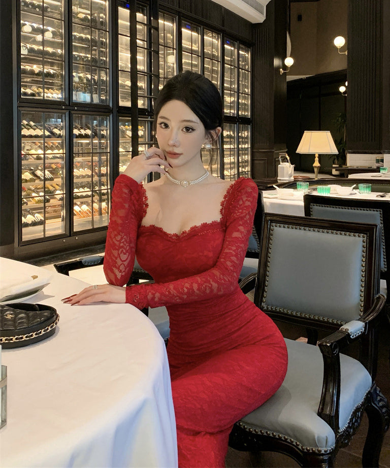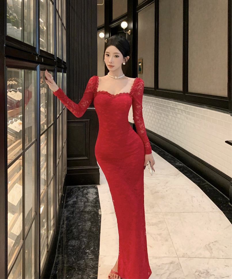 【Black&red】ロングドレス レース エレガント セレブ風 マーメイド 気質 宴会 パーティー 高級感 女子力 XH2-ZED885573DXH238B
