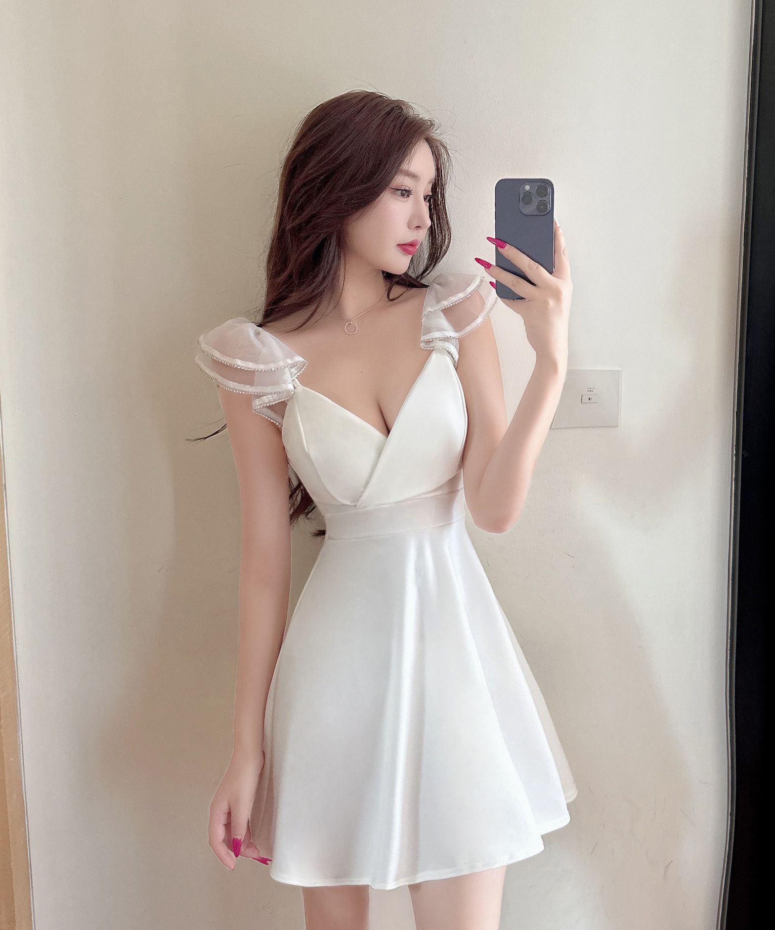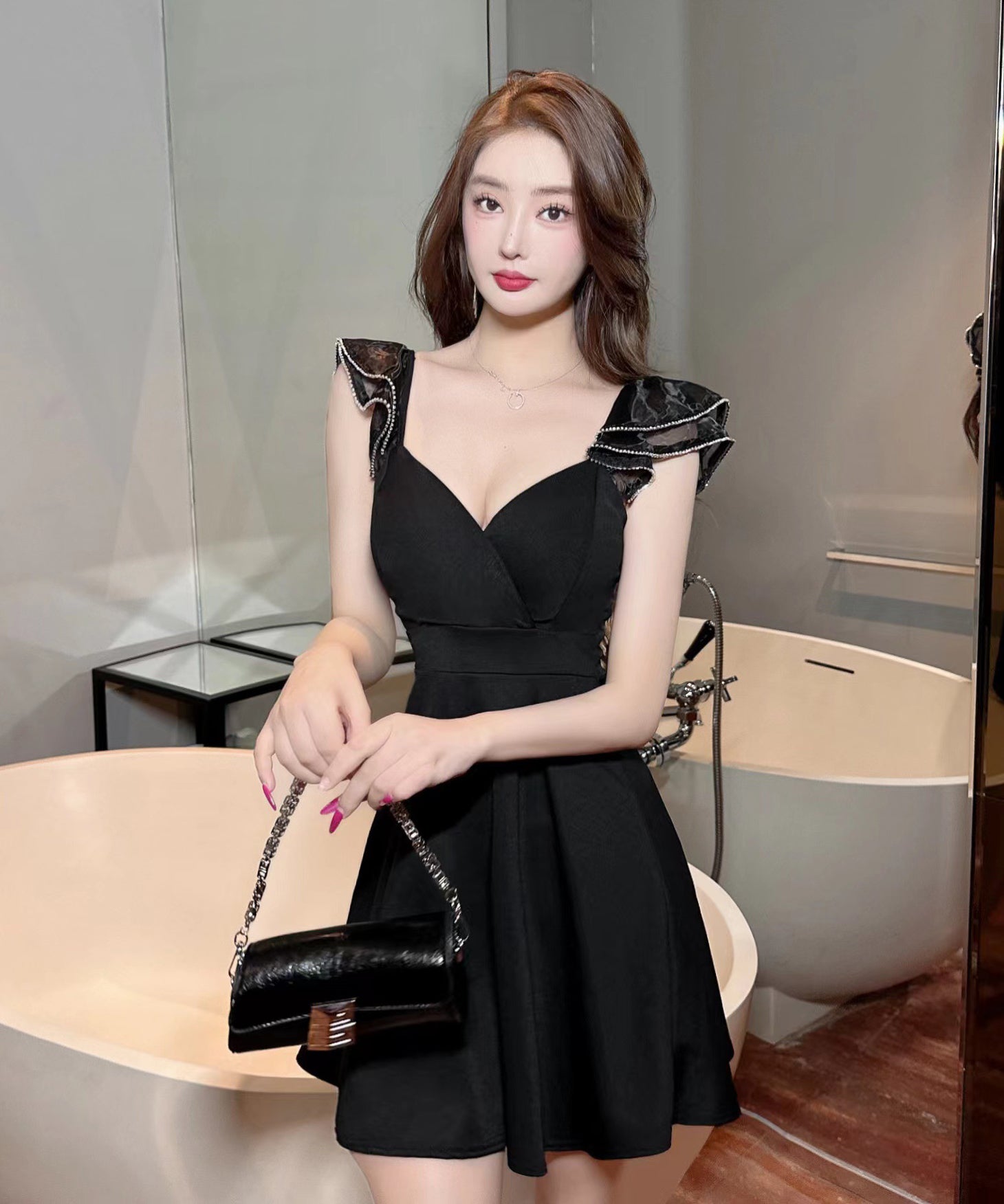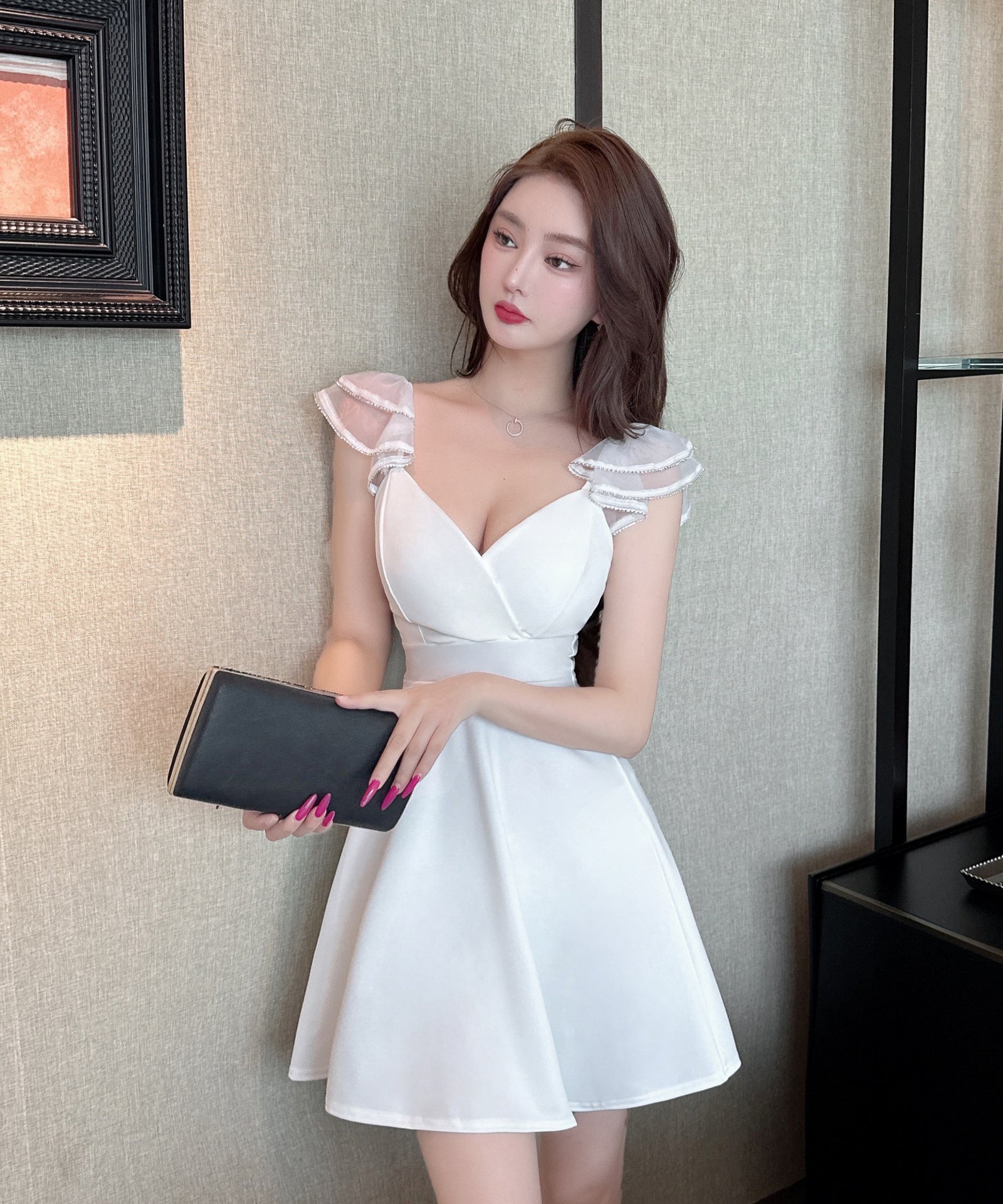 【black&white】ミニドレス Aライン 大人可愛い Vネック 谷間魅せ XH2-DD4902