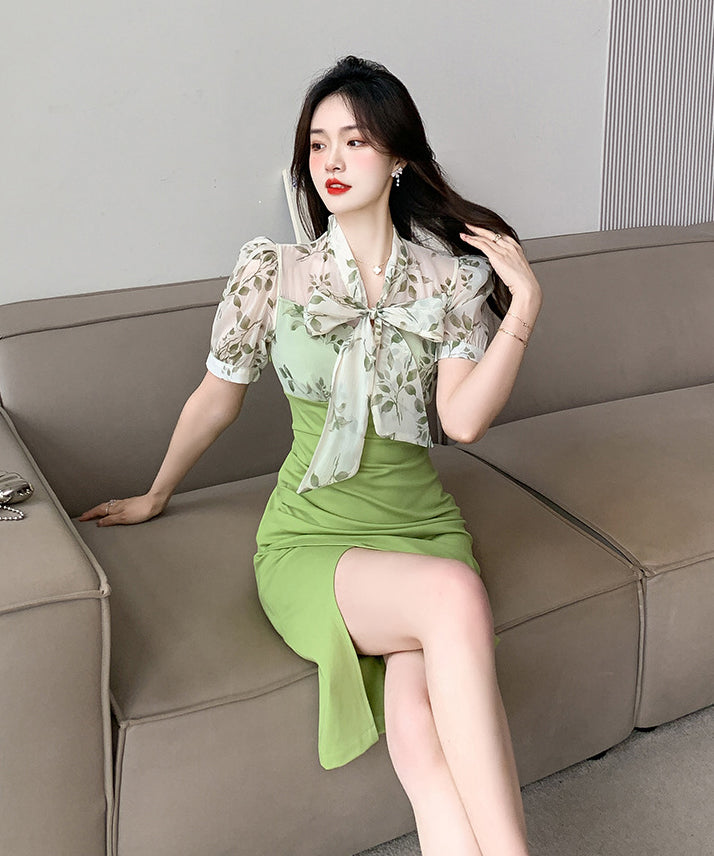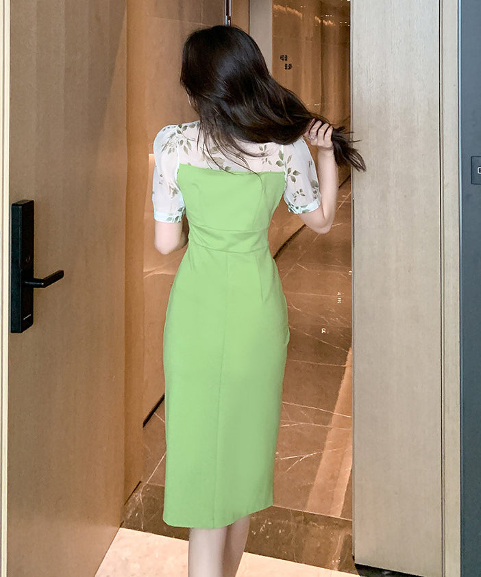 【green&black】レディース 膝丈ドレス チュール 宴会 二次会 大人可愛い XH2-ZED88906GT415