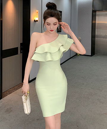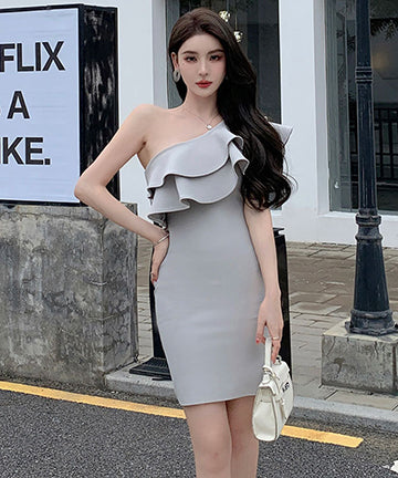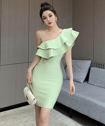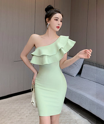 【green&gray】ミニドレスパーティーワンショルダーフリル宴会 XH2-ZED889544GT347