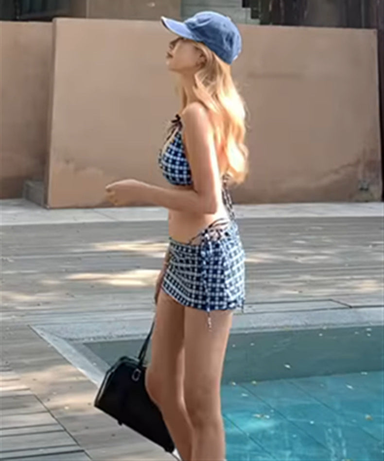 hot girl 水着 ビキニ セクシー 谷間魅力 ホルターネック チェック柄 YH7-CF25068