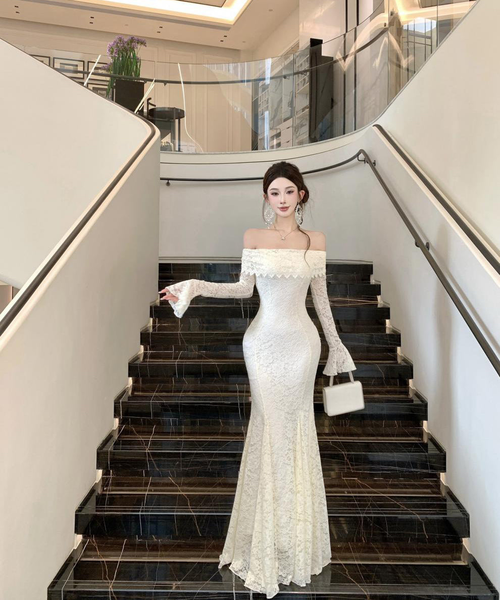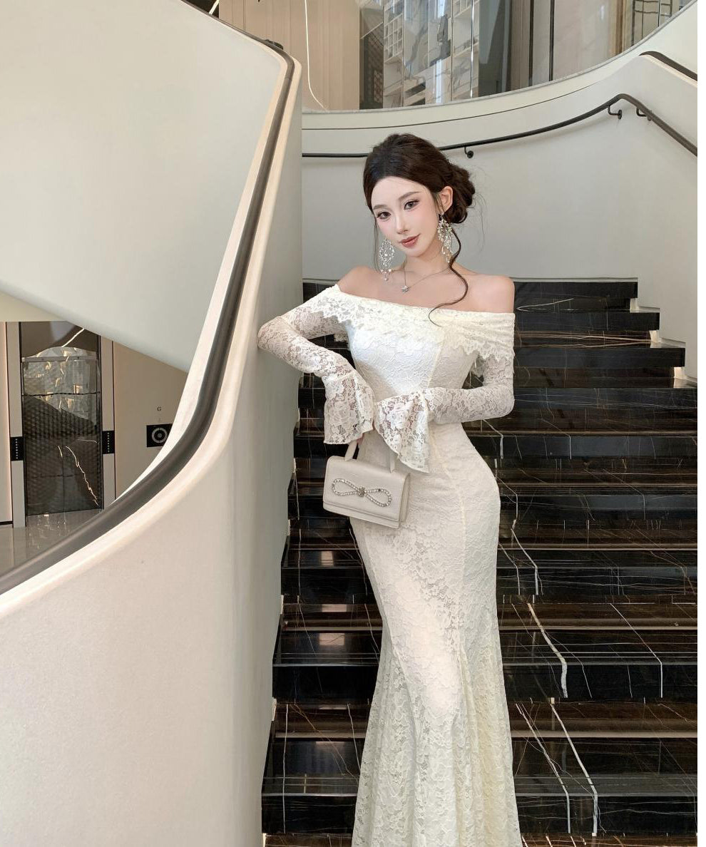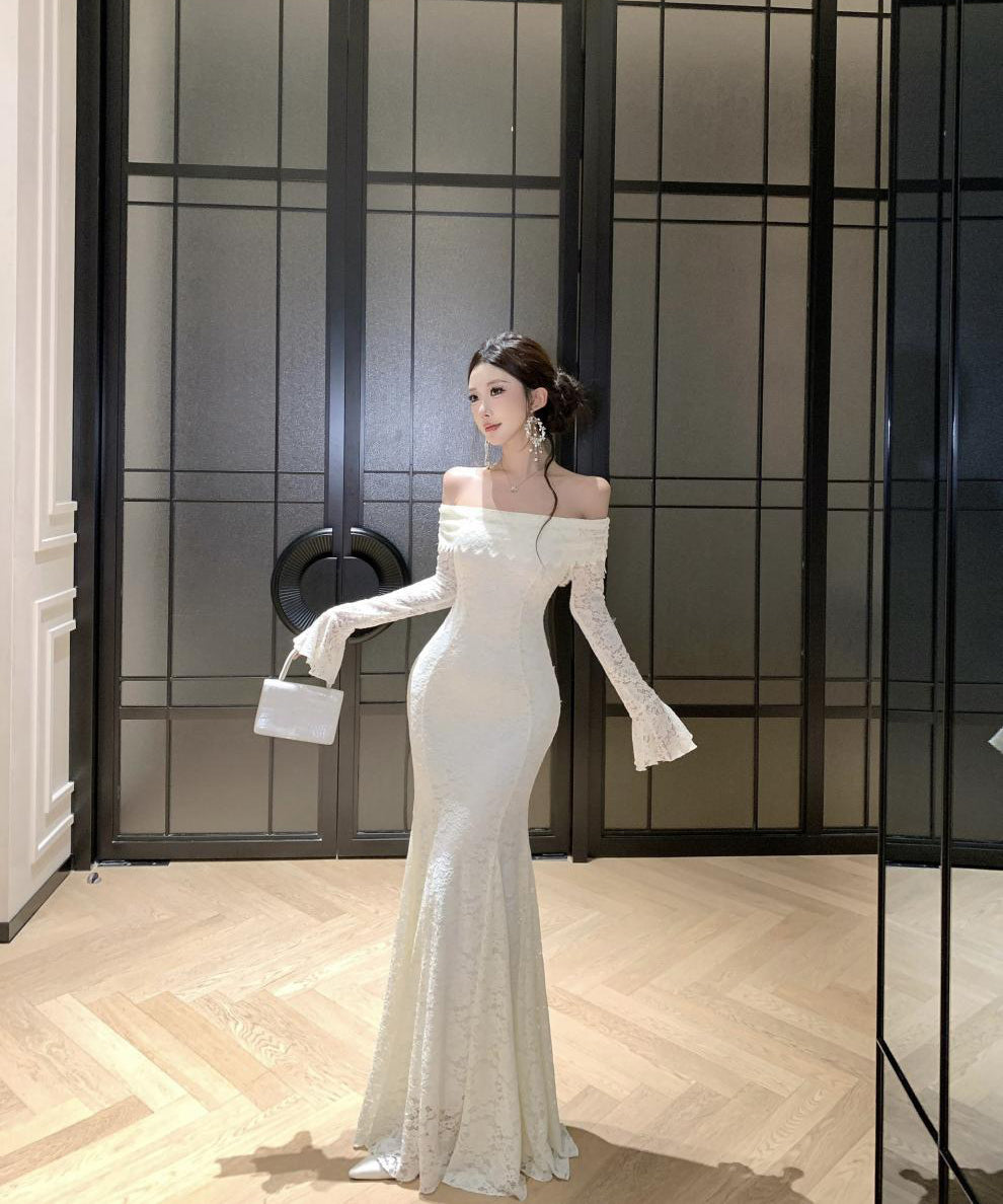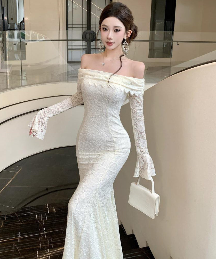 Lady's coco ロングドレス キャバドレス フレンチスタイル オフショルダー レースドレス タイト ウエストマーク 上品 セクシー 秋冬新作 LW2-CD7-238-87130600