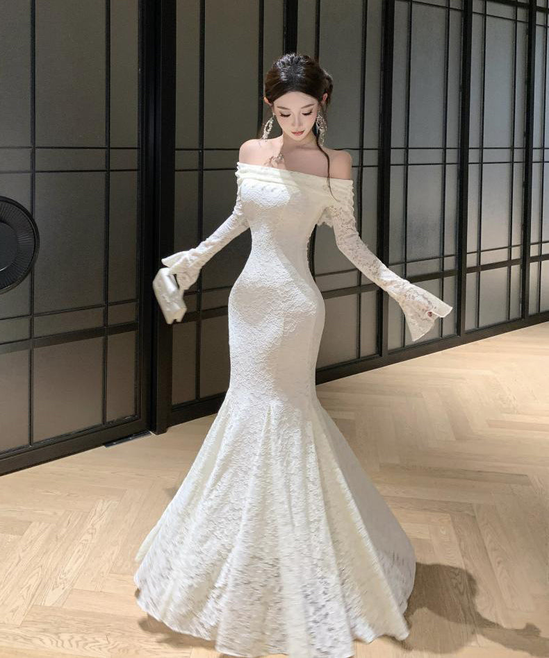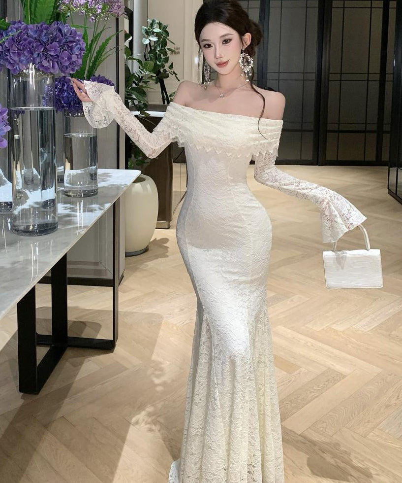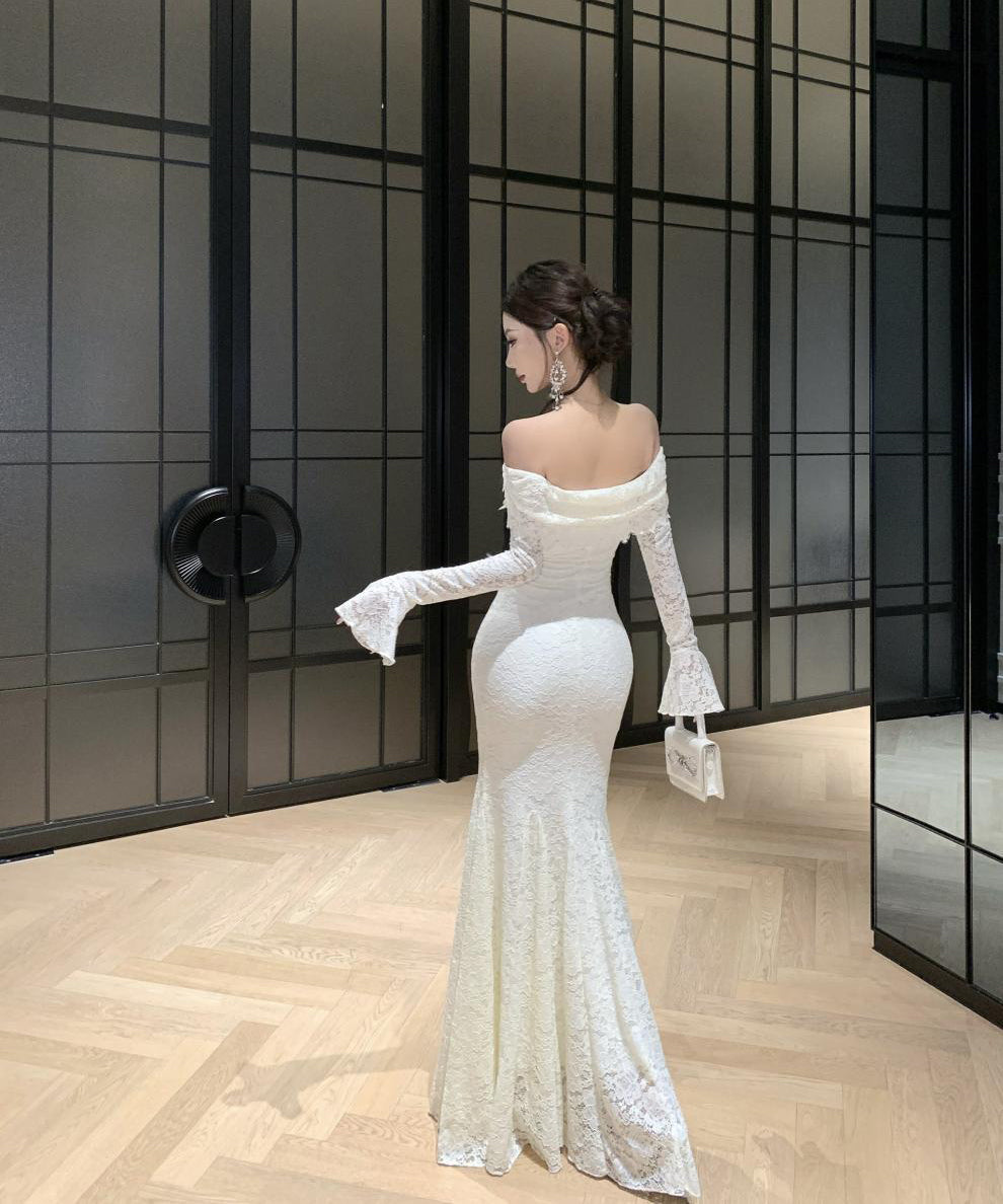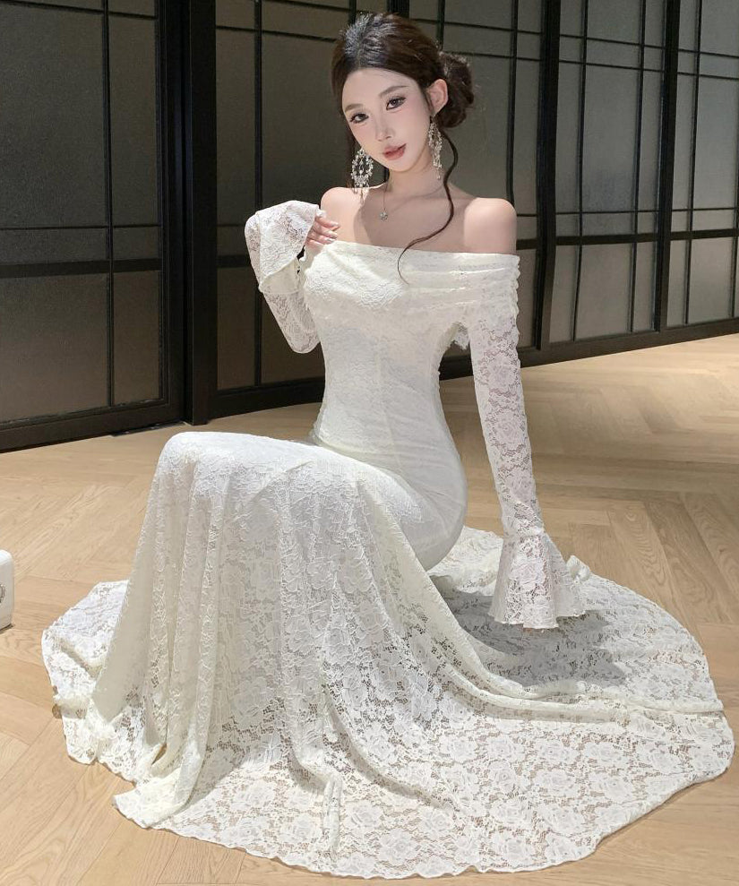Lady's coco ロングドレス キャバドレス フレンチスタイル オフショルダー レースドレス タイト ウエストマーク 上品 セクシー 秋冬新作 LW2-CD7-238-87130600