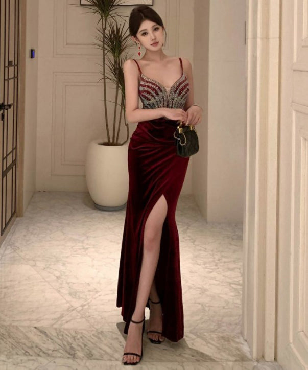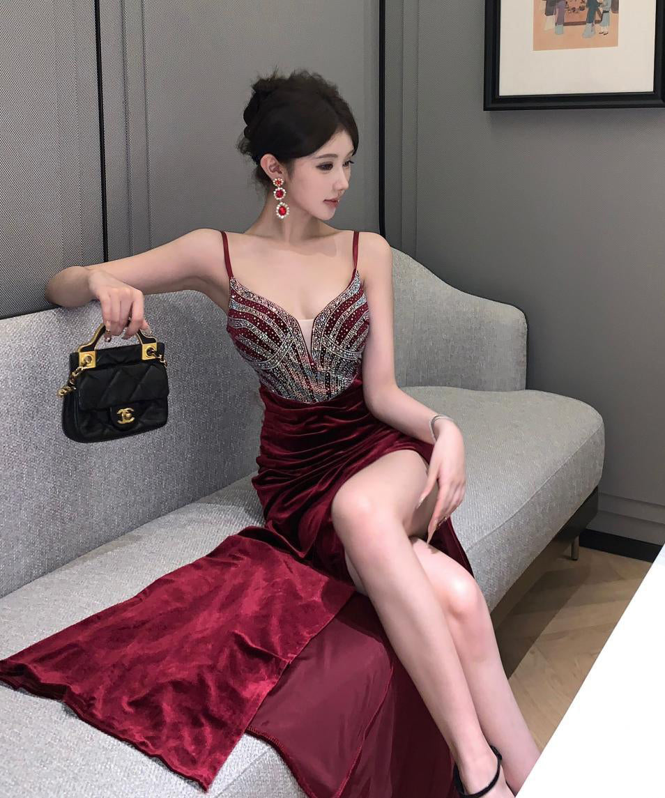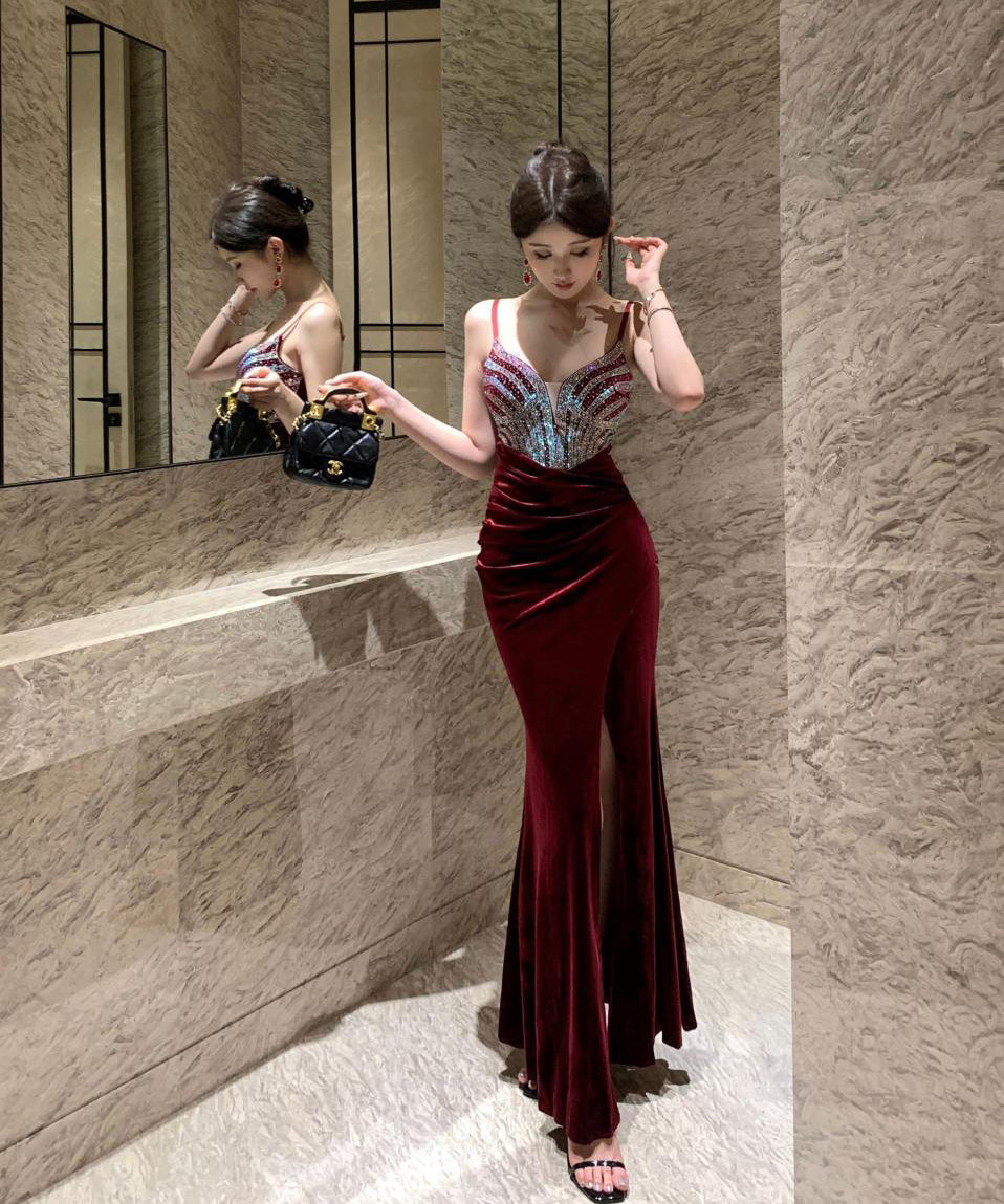 【red&Black】ロングドレス キラキラ キャバドレス ナイトドレス パーティー セクシー 気質 XH2-ZED888533DXH238A