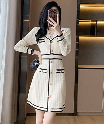 Vネック キャバドレス ニットワンピース 秋新作 セクシー 姉 着痩せ 気質 LT2-XC-8826#