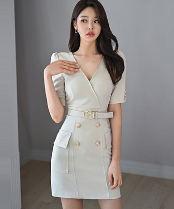 Vネック ミニドレス キャバドレス 高級感 披露宴 新作 LT2-ZED880683E49