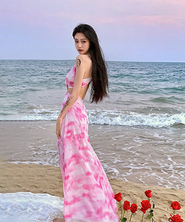 サンドレス 海辺 旅 バックレス ロマンティック風 セクシー XH2-XD136
