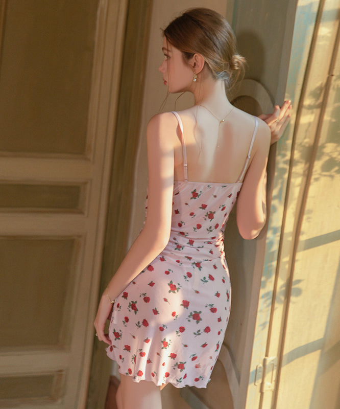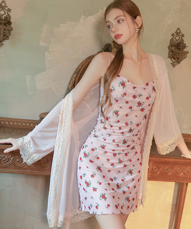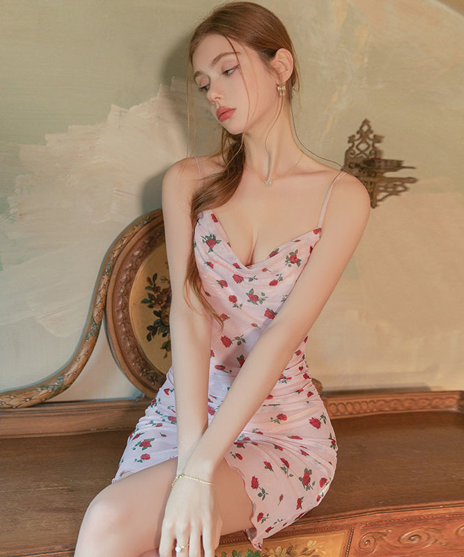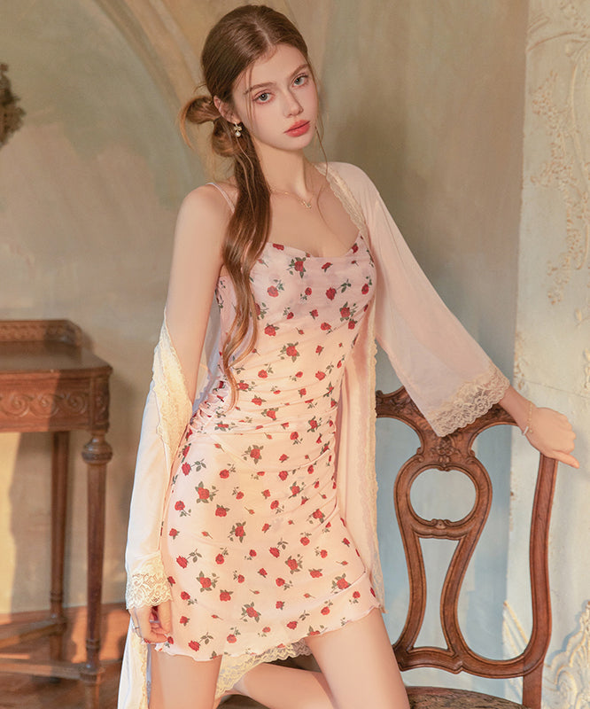 ルームウェア セクシー フラワーレース キャミソール 透け感 ダルメシアンネック 可愛い ナイトウェア LW2-GR5615
