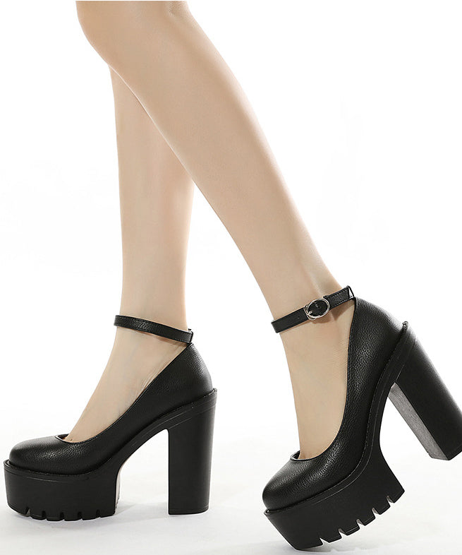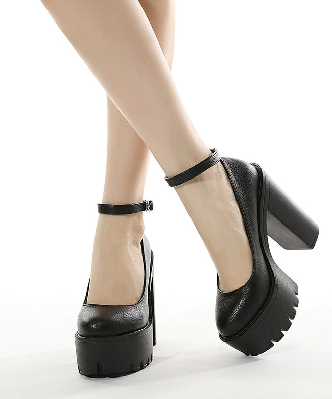 パンプス 痛くない 太ヒール レディース 靴 ストラップ 歩きやすい 黒 MY5029