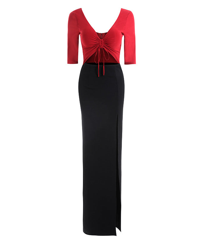 3色 パーティードレス ロングドレス キャバドレス セクシー Vネック 谷間魅せ MY2-YM9046