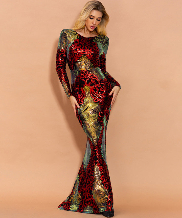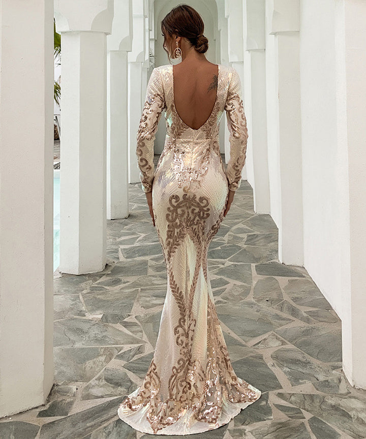 パーティードレス ロングドレス キラキラ 長袖 着痩せ高品質匠 XY2-PC-FT19747