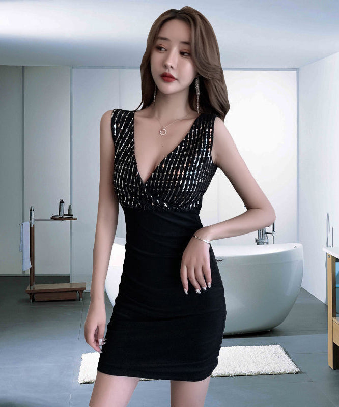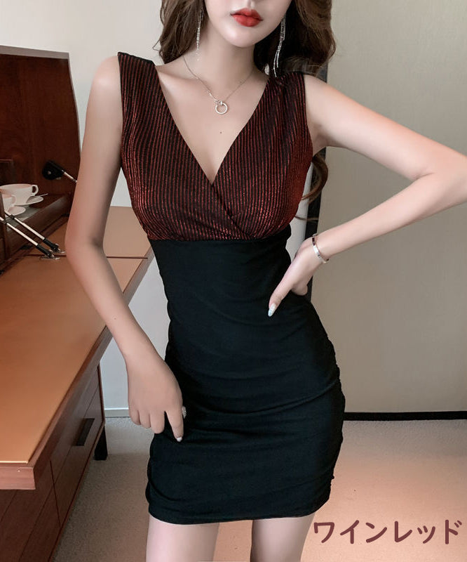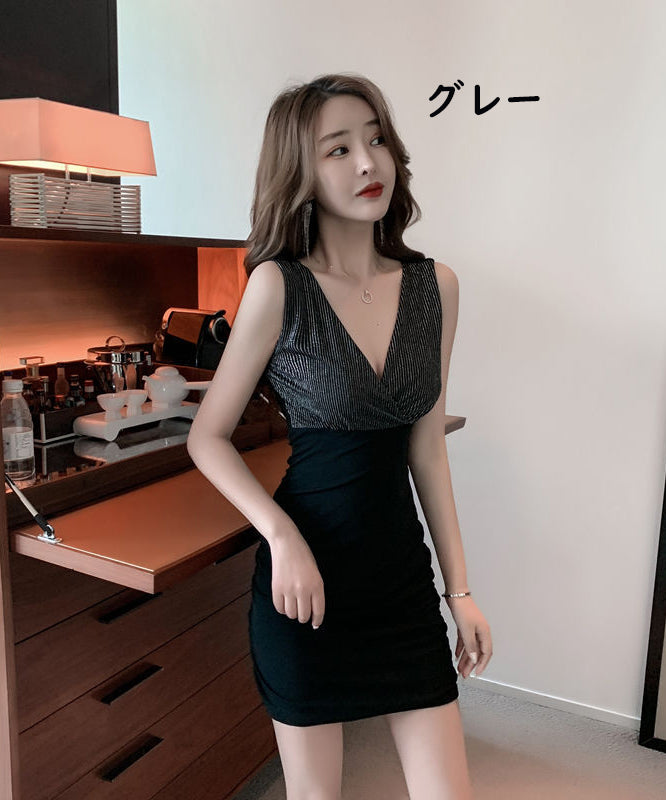 ピカピカ ディープⅤネック セクシー魅了 肌見せ キャバドレス ミニドレス MY2146
