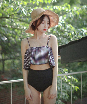 フリル チェック柄 かわいい 水着 ビキニ タンキニ モノキニ 新作 海辺 MY7-KSD