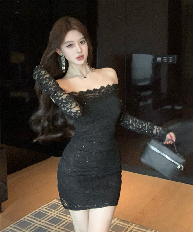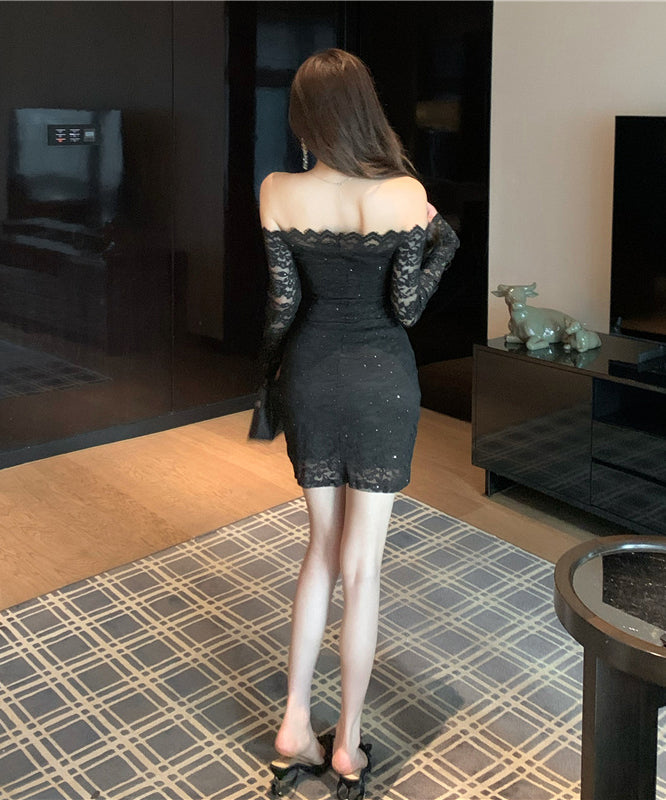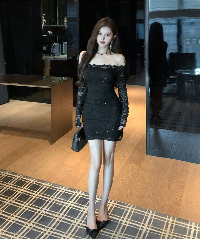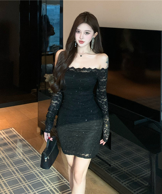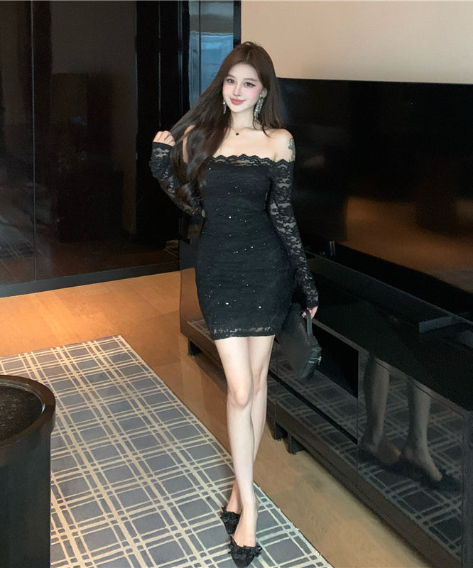 ミニドレス キャバドレス セクシー スパンコール レース オフショルダー ボディライン JC2-WDS5308