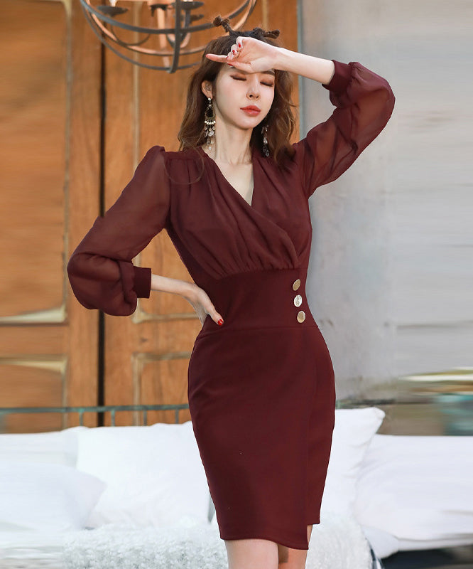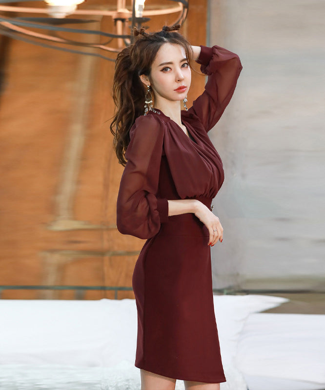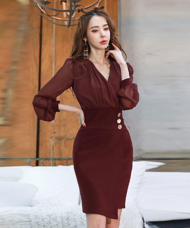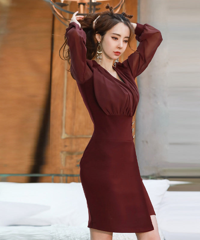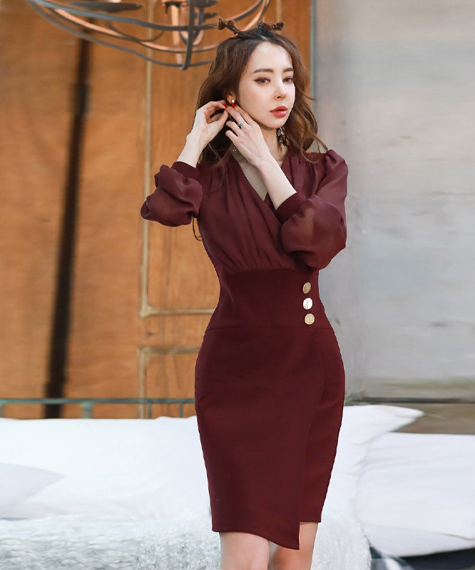 レディースドレス エレガント 女性 カジュアル ワンピース ドレス 韓国 長袖 Vネック XY2-ZRD885661A71