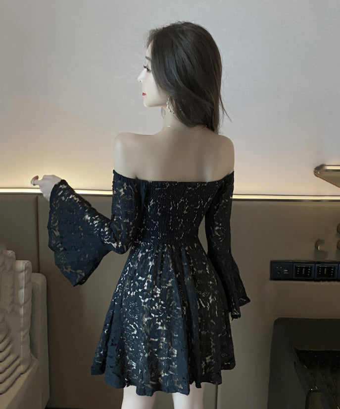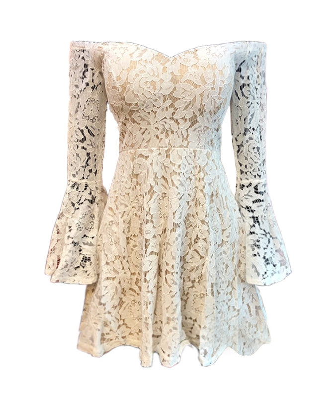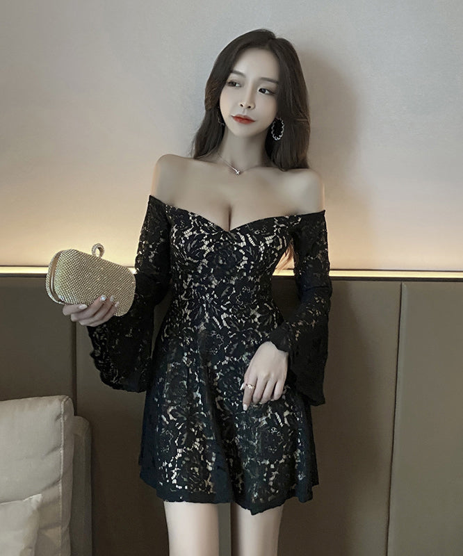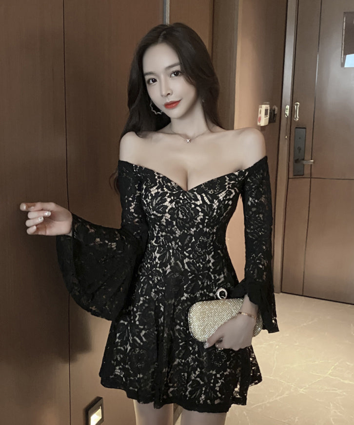 レース 長袖 高見え Aライン 体型カバー ミニドレス キャバドレス XY2-YM8531