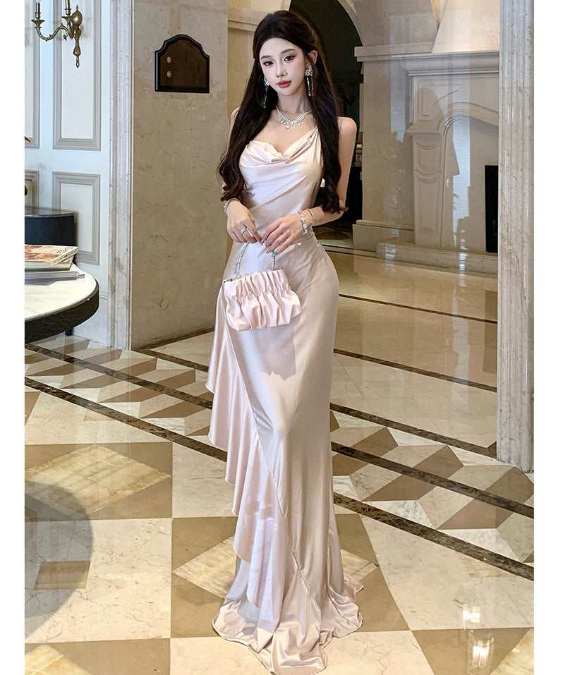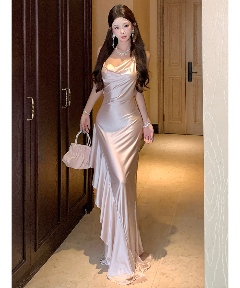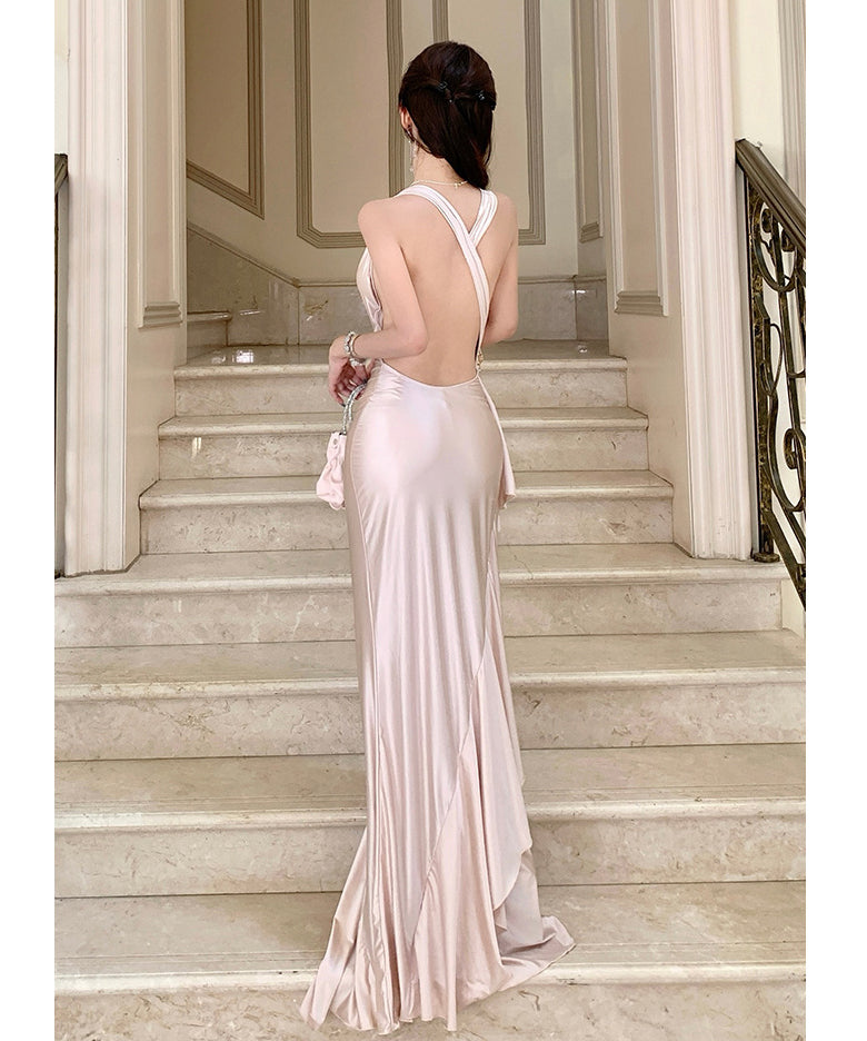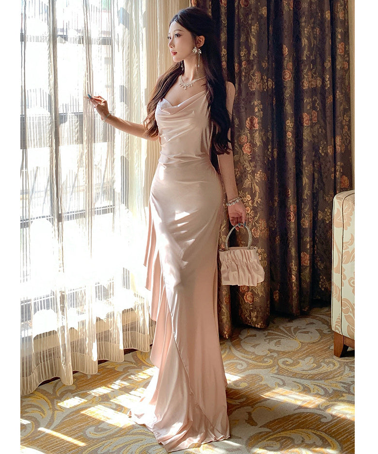 ロングドレス キャバドレス セクシー バックオープン ギャザー サテン エレガント パーティー JC2-XHY919292