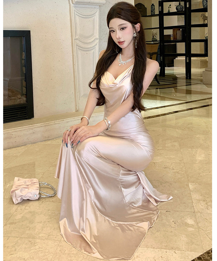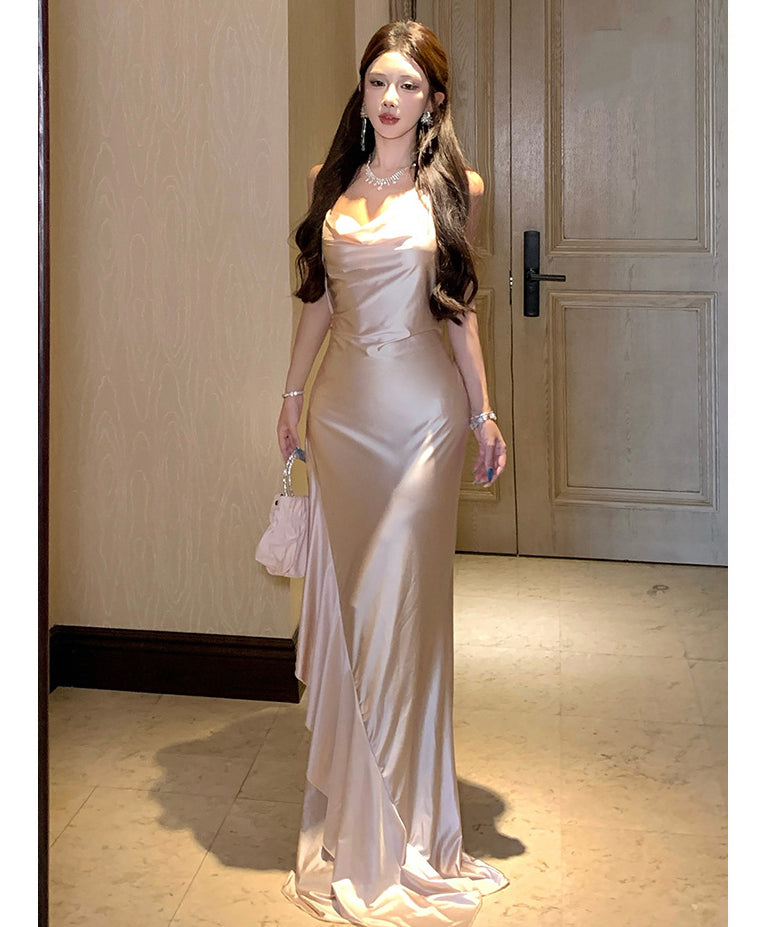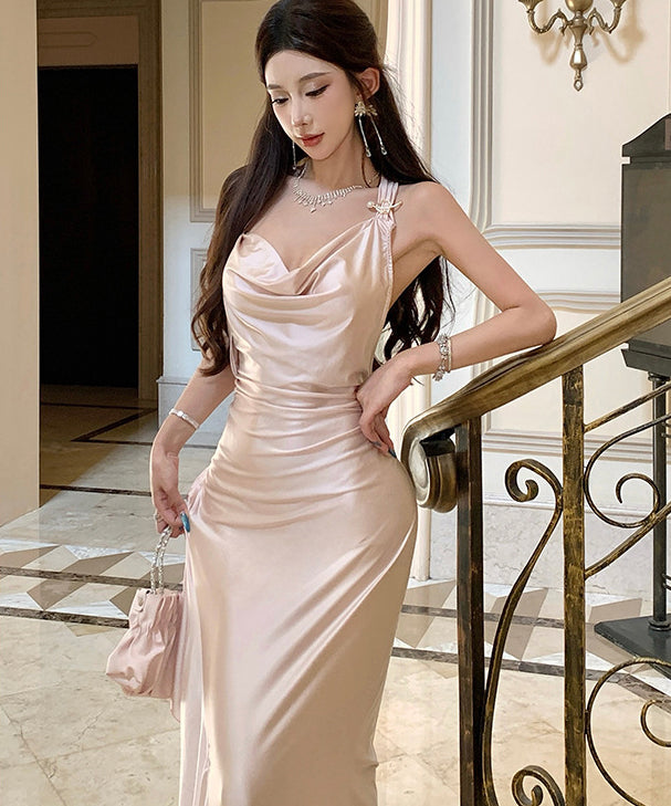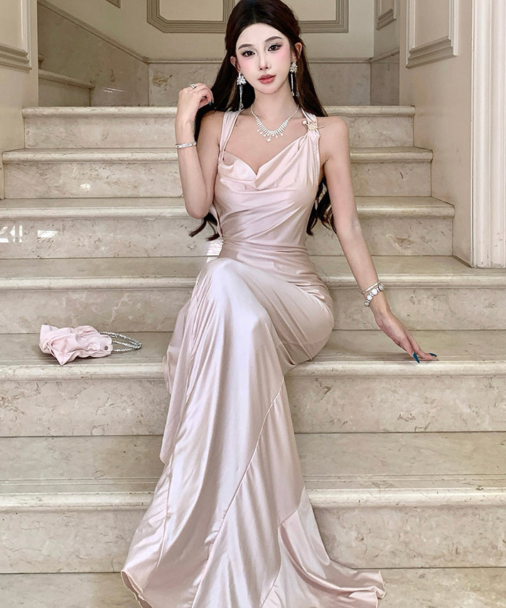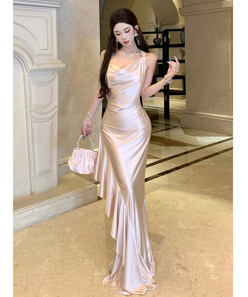 ロングドレス キャバドレス セクシー バックオープン ギャザー サテン エレガント パーティー JC2-XHY919292