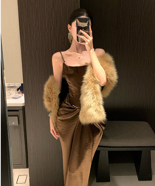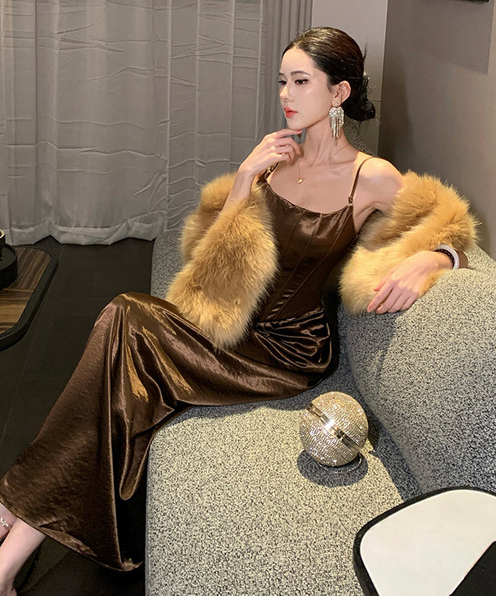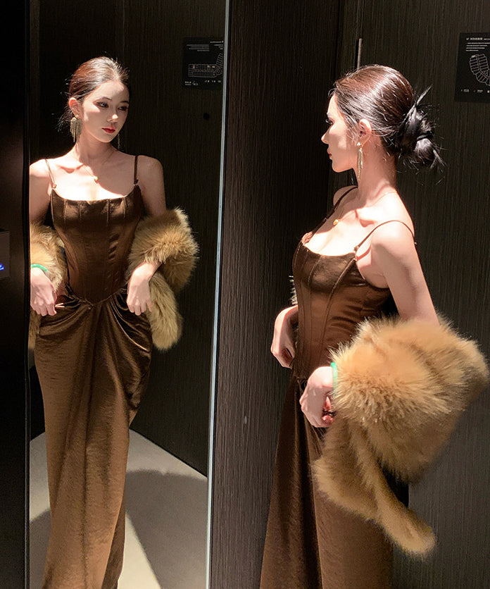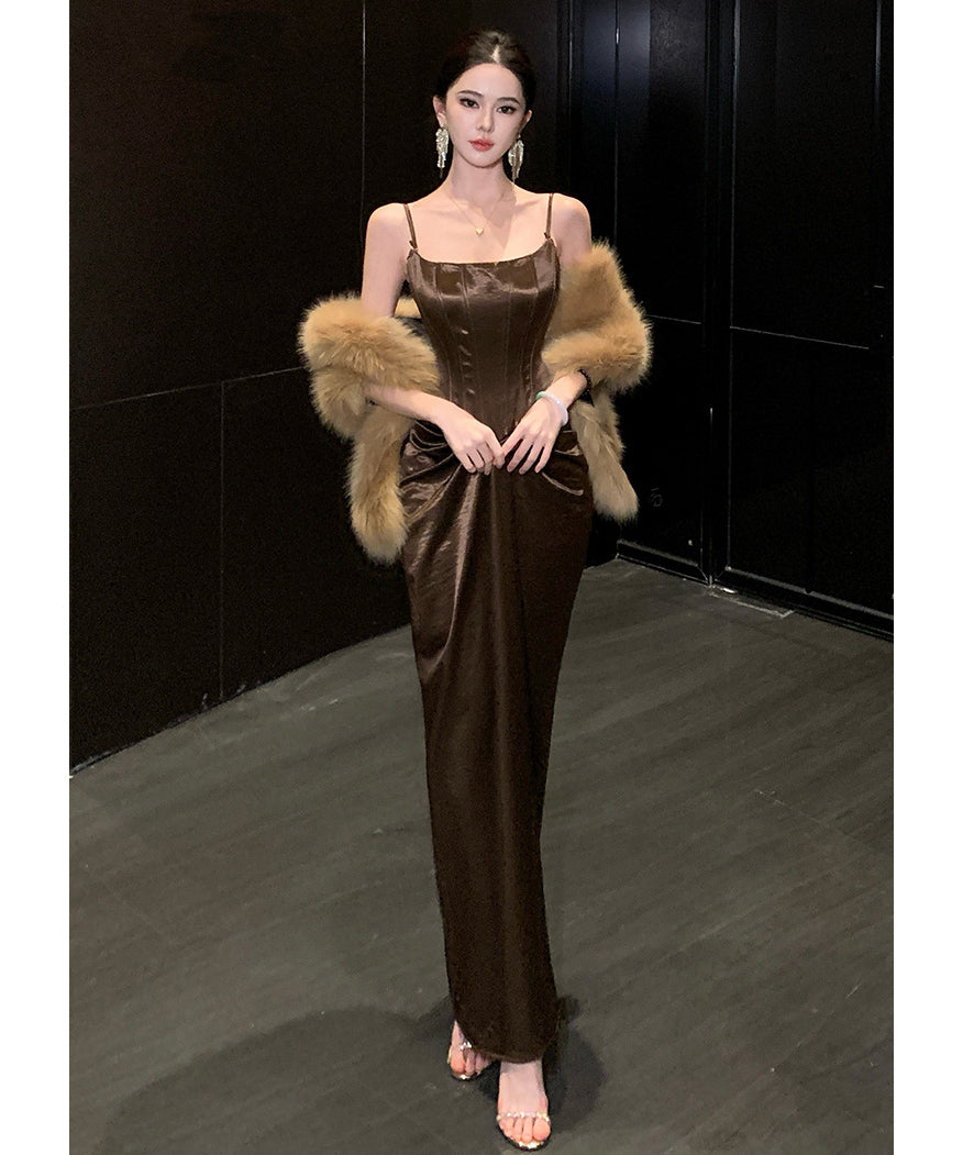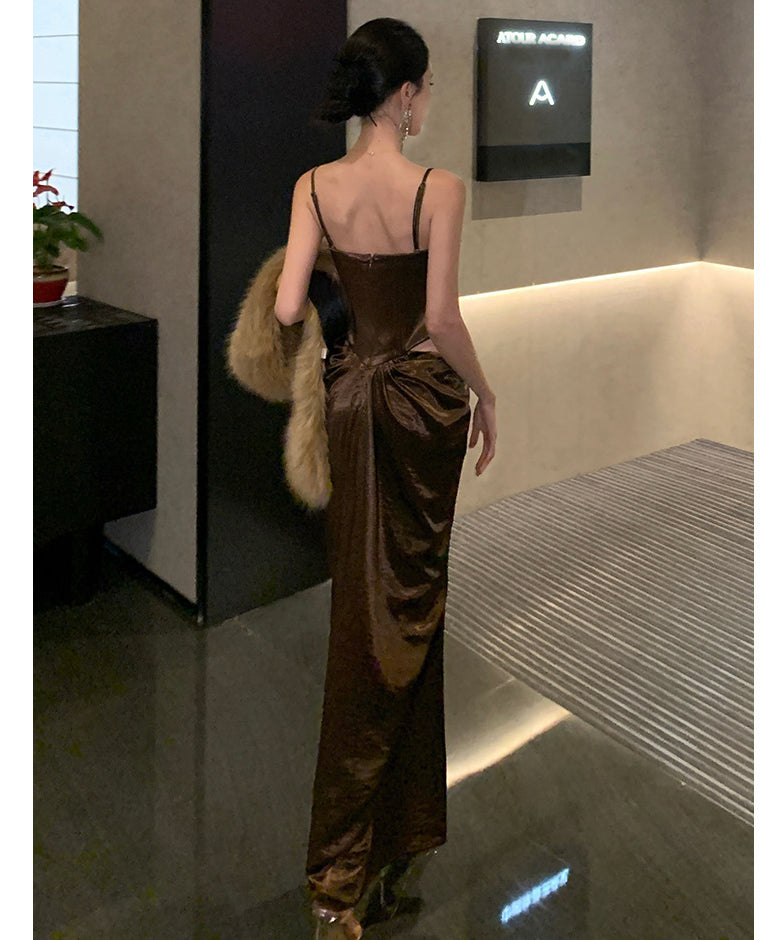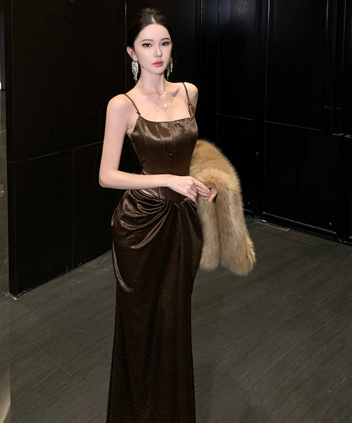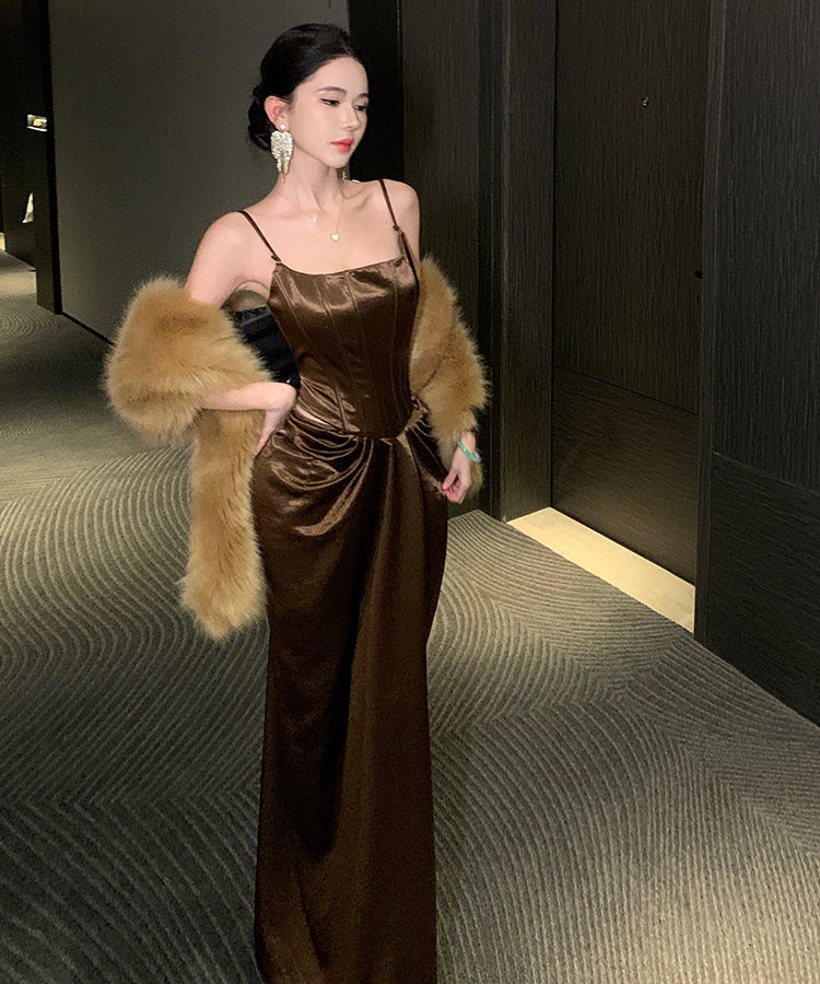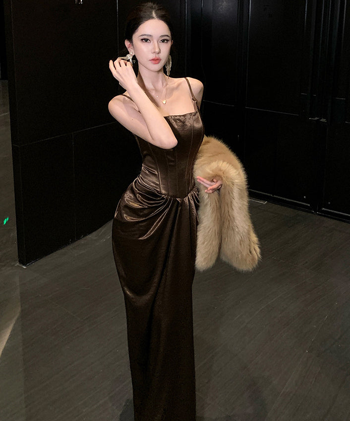 ロングドレス キャバドレス セクシー フェミニン フレンチ サテン カットアウト ドレープ 誕生日 パーティー JC2-XHY913262