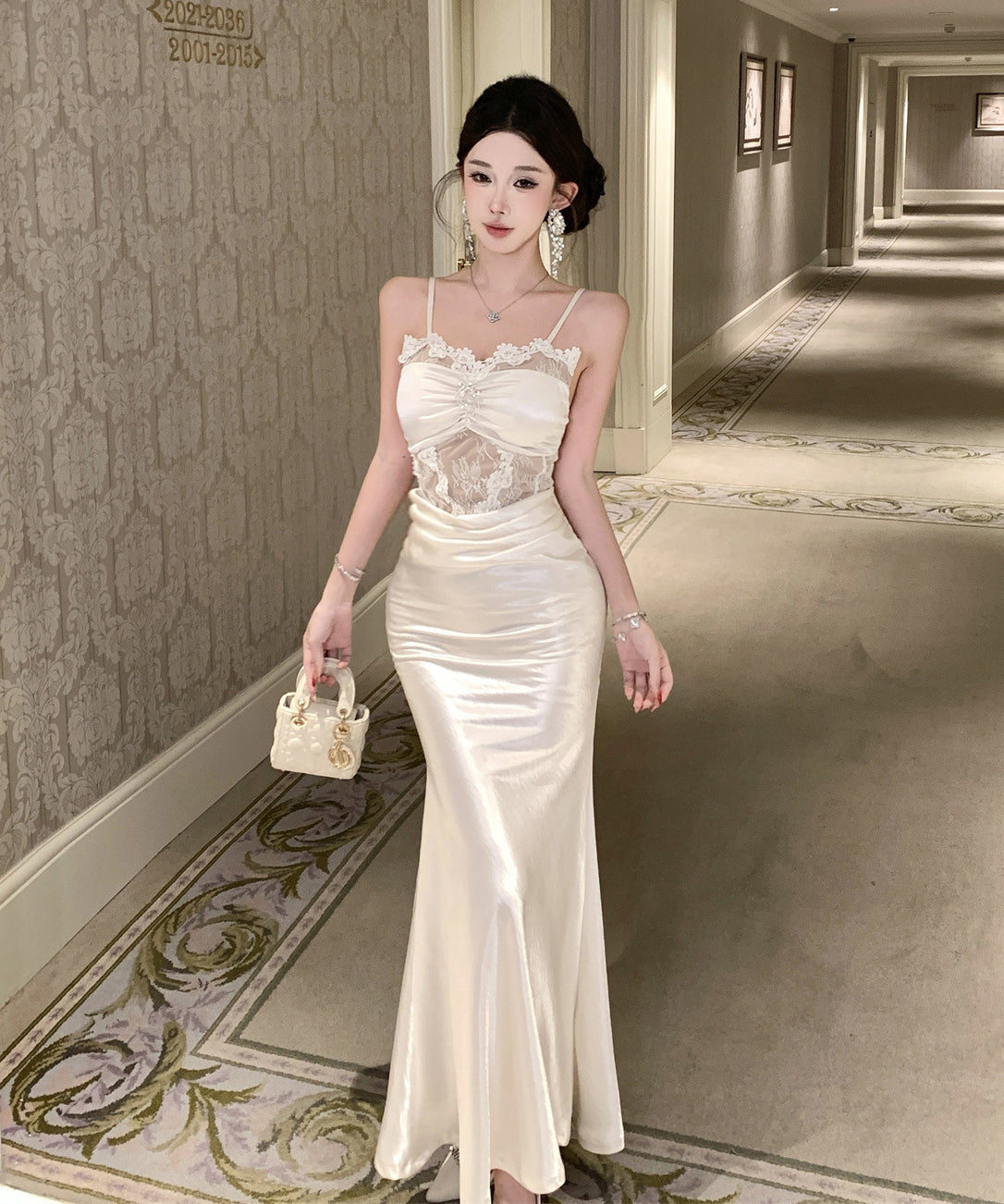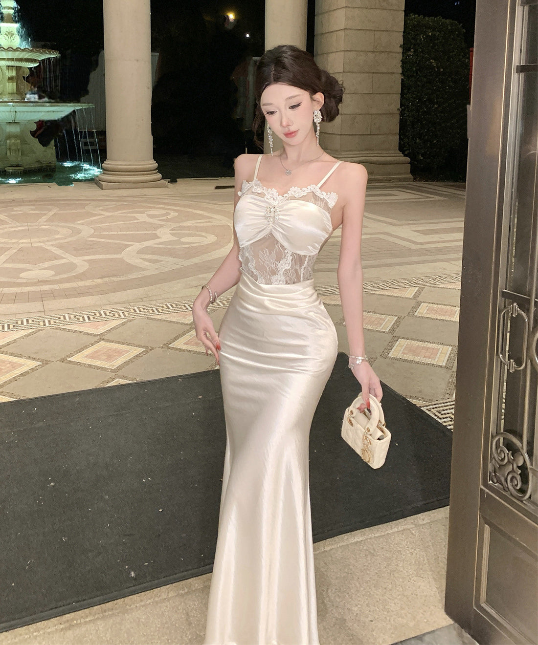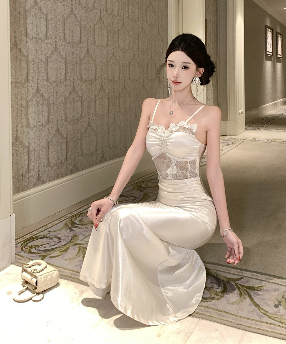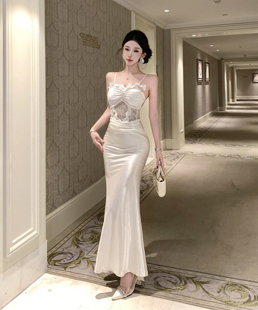 ロングドレス キャバドレス セクシー レース×チュール切替 サテン 上品 キャミソール マーメイドライン パーティー JC2-DD3832