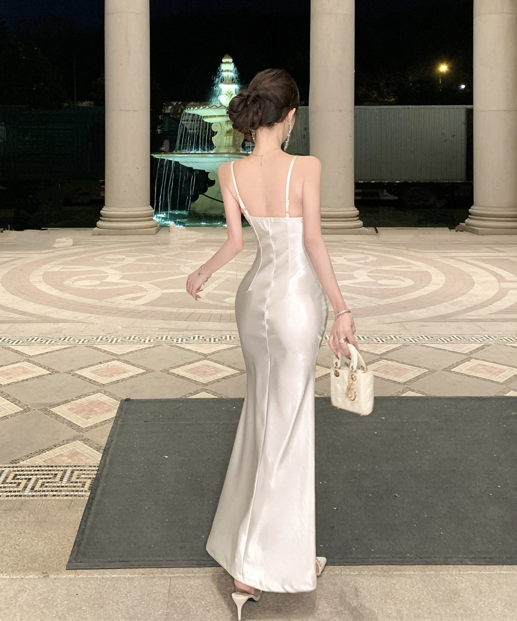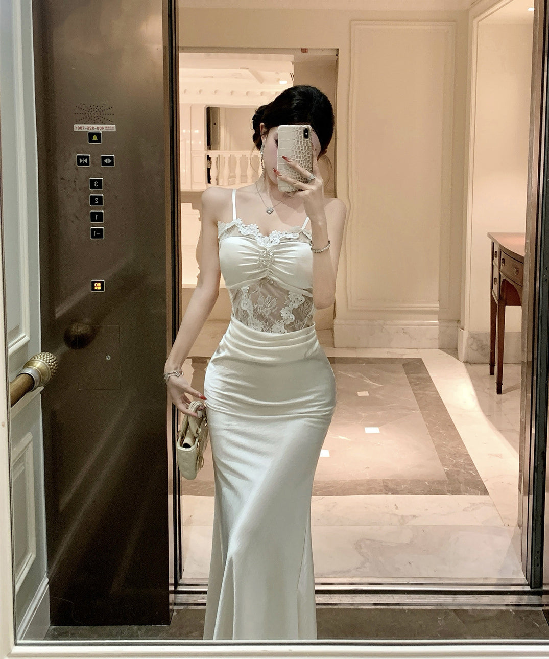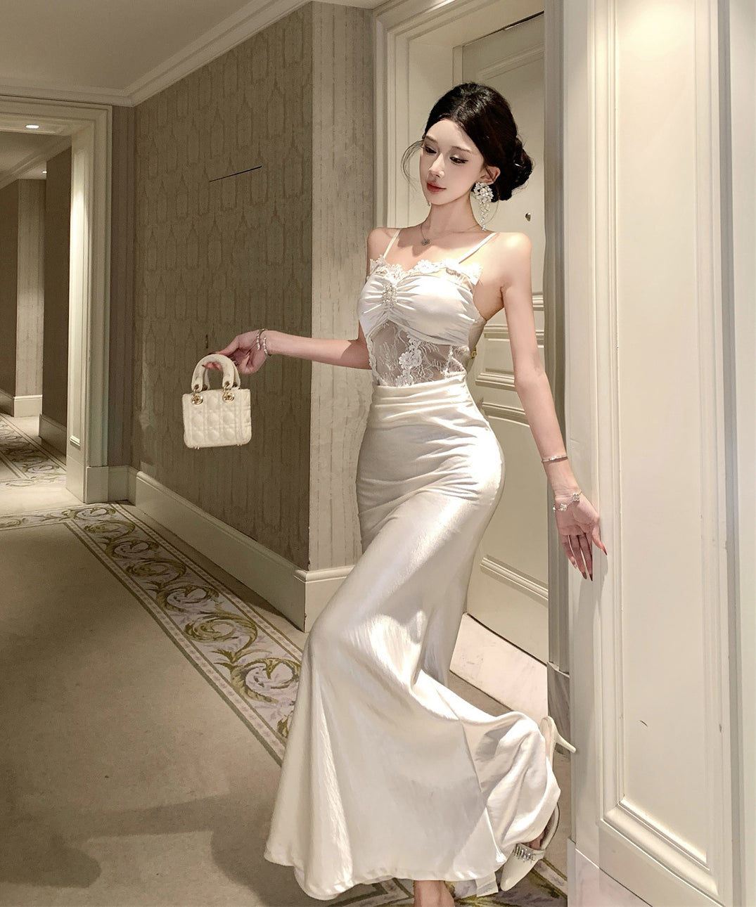 ロングドレス キャバドレス セクシー レース×チュール切替 サテン 上品 キャミソール マーメイドライン パーティー JC2-DD3832