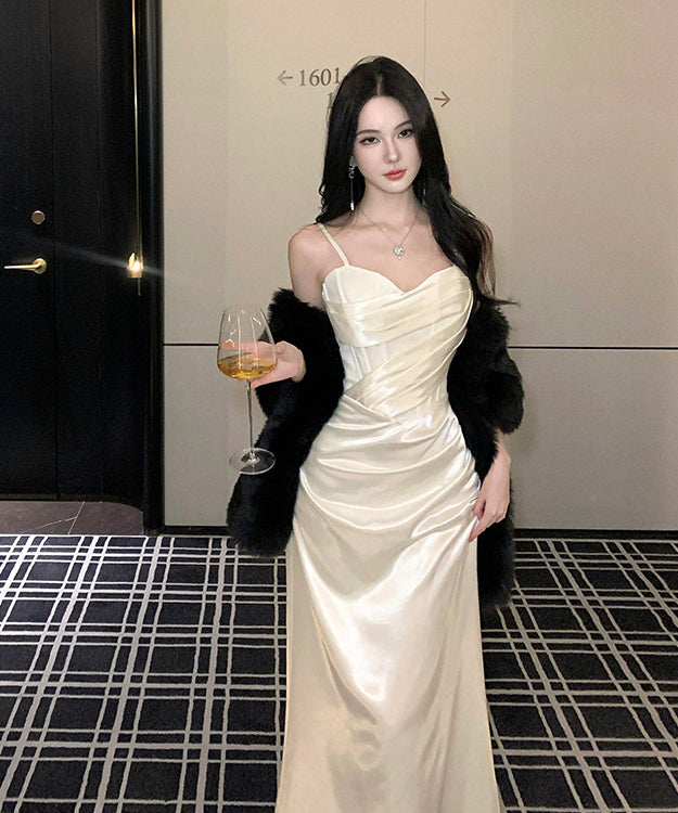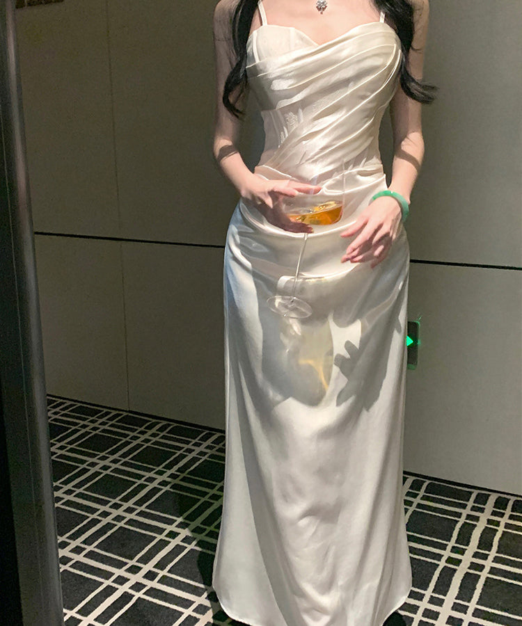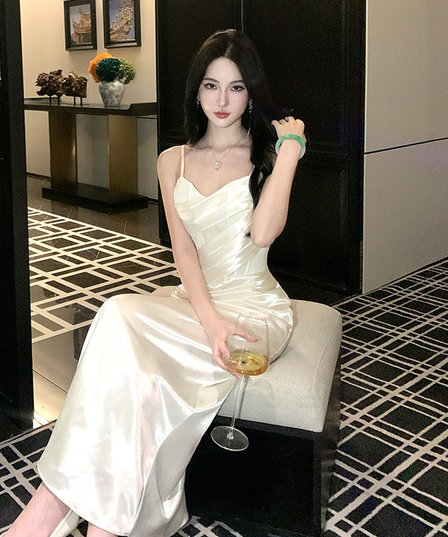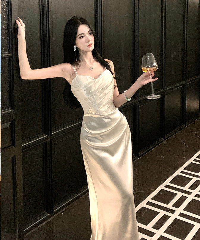 ロングドレス キャバドレス セクシー 上品 フレンチ サテン キャミワンピ ラメ マーメイドライン パーティー JC2-XHY919892