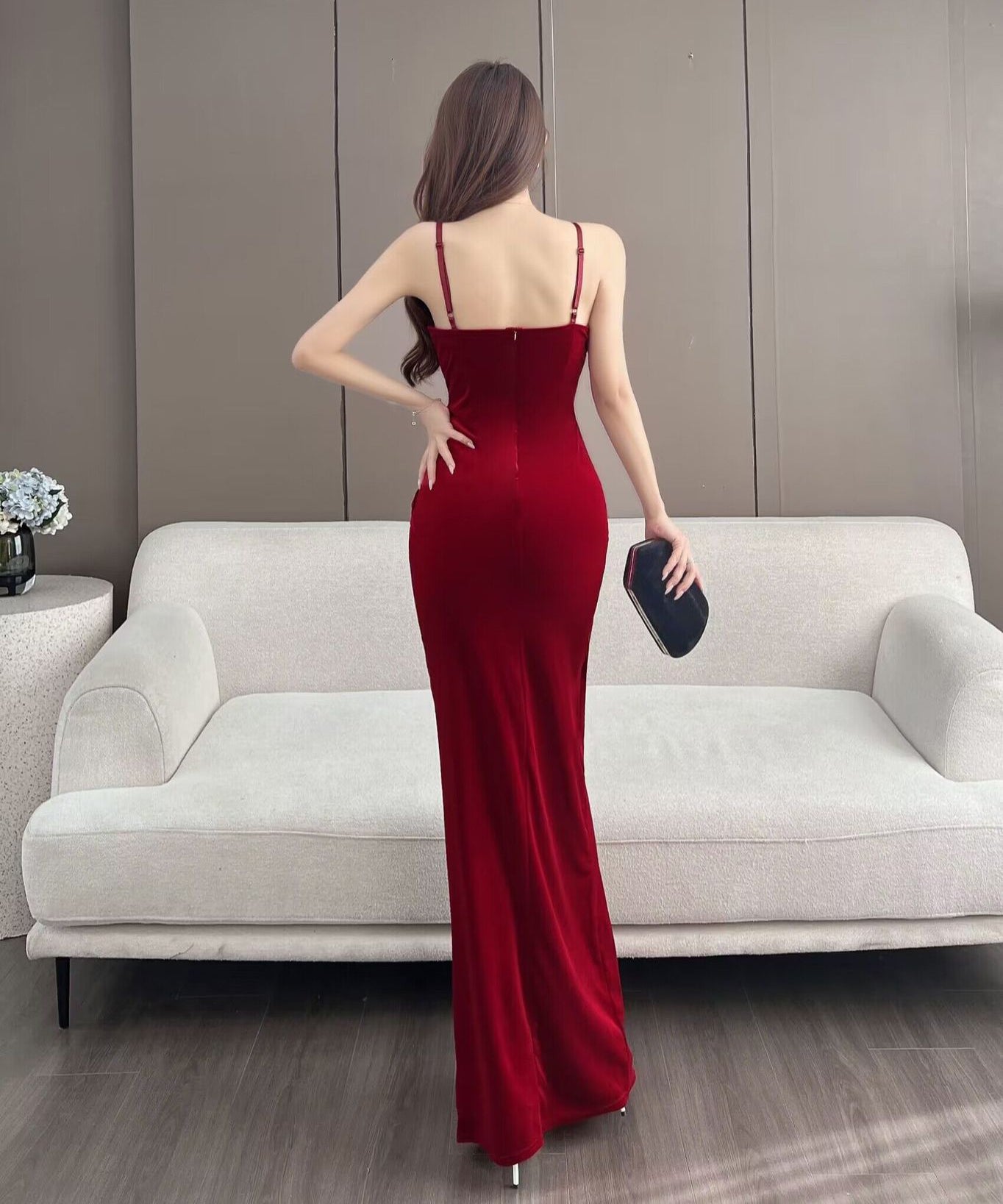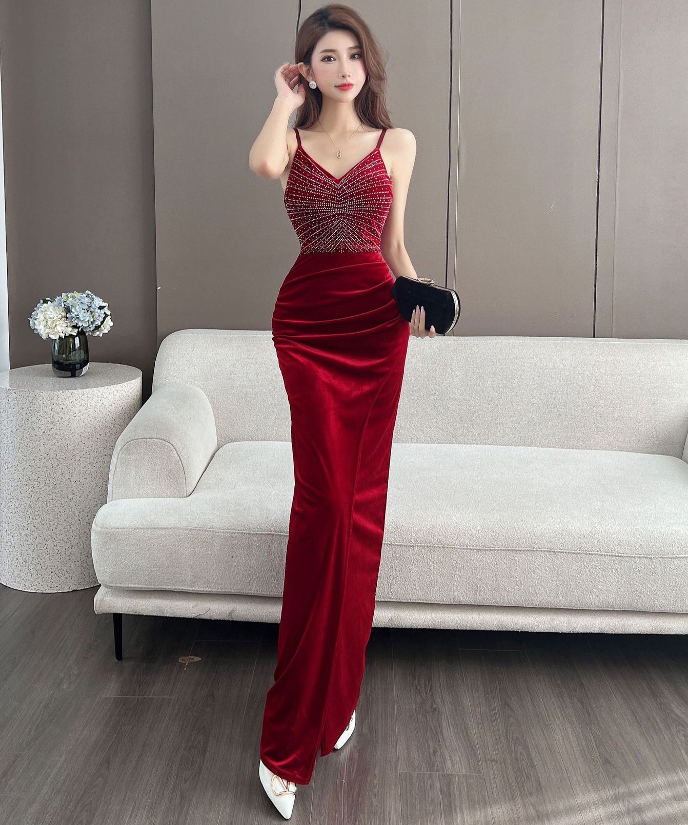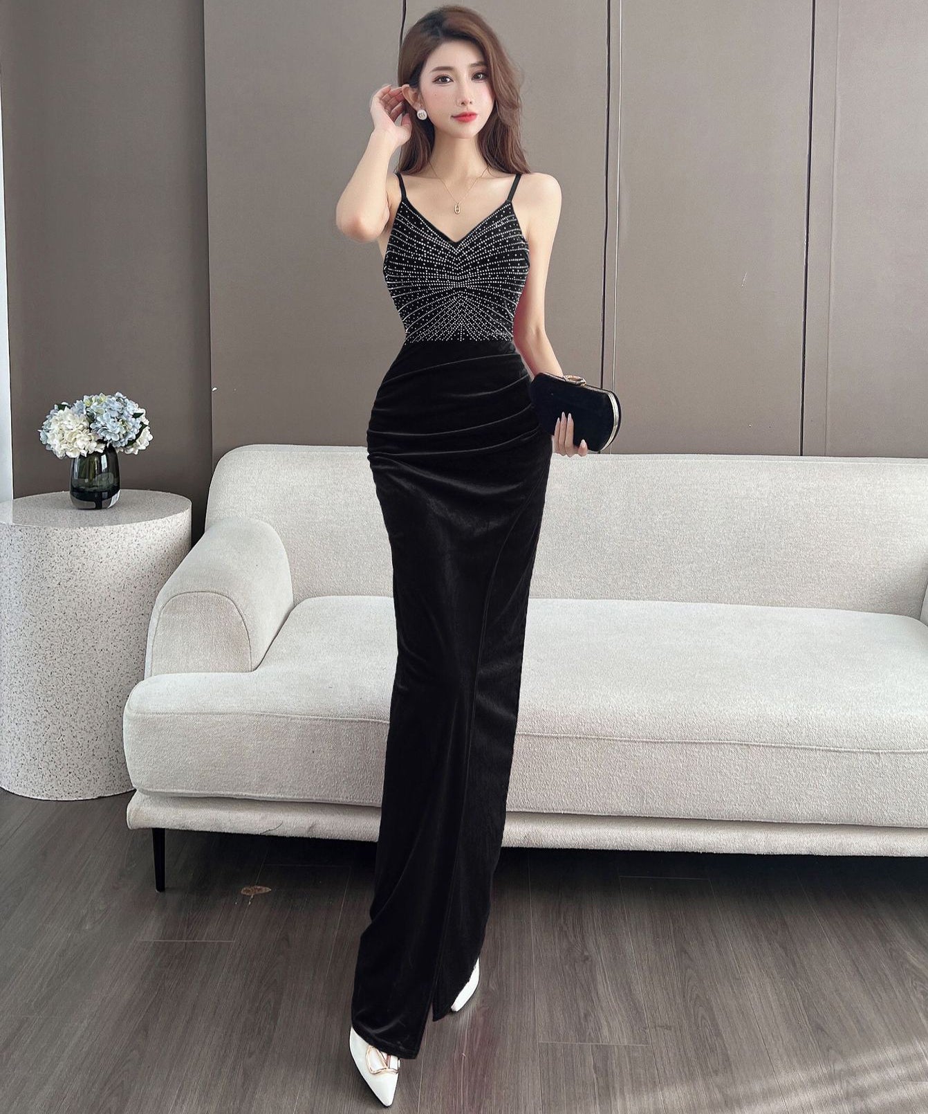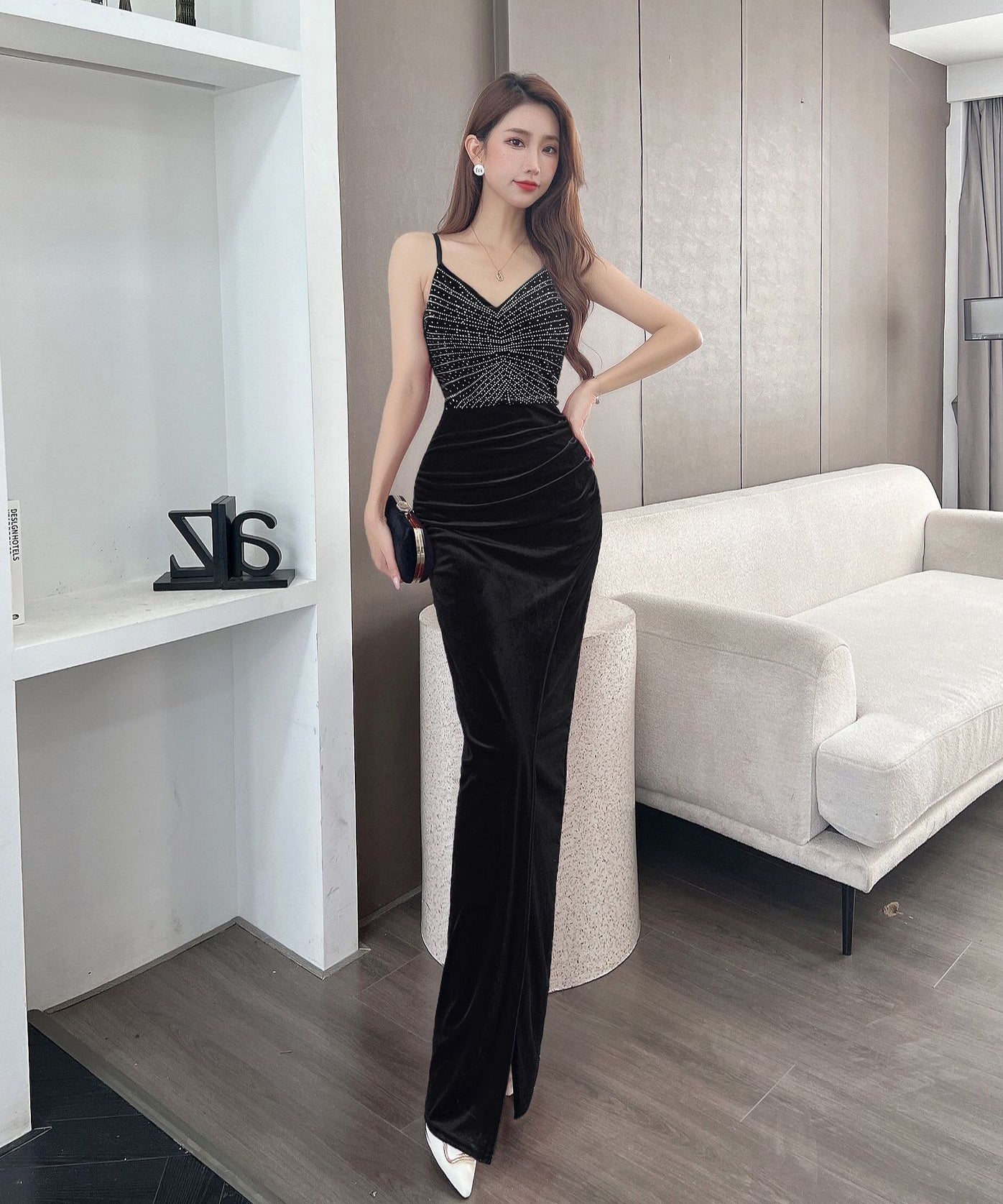 【4色】ロングドレス キャバドレス セクシー 韓国風 Vネック 細見え ベルベット キャミソール パーティー JC2-MLS7787611