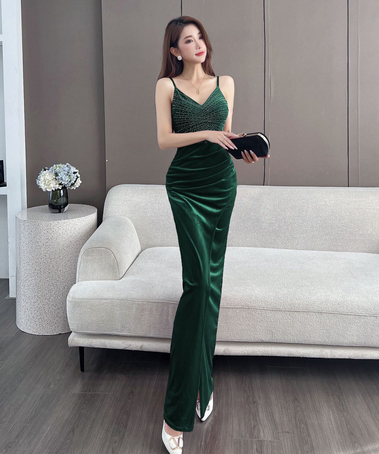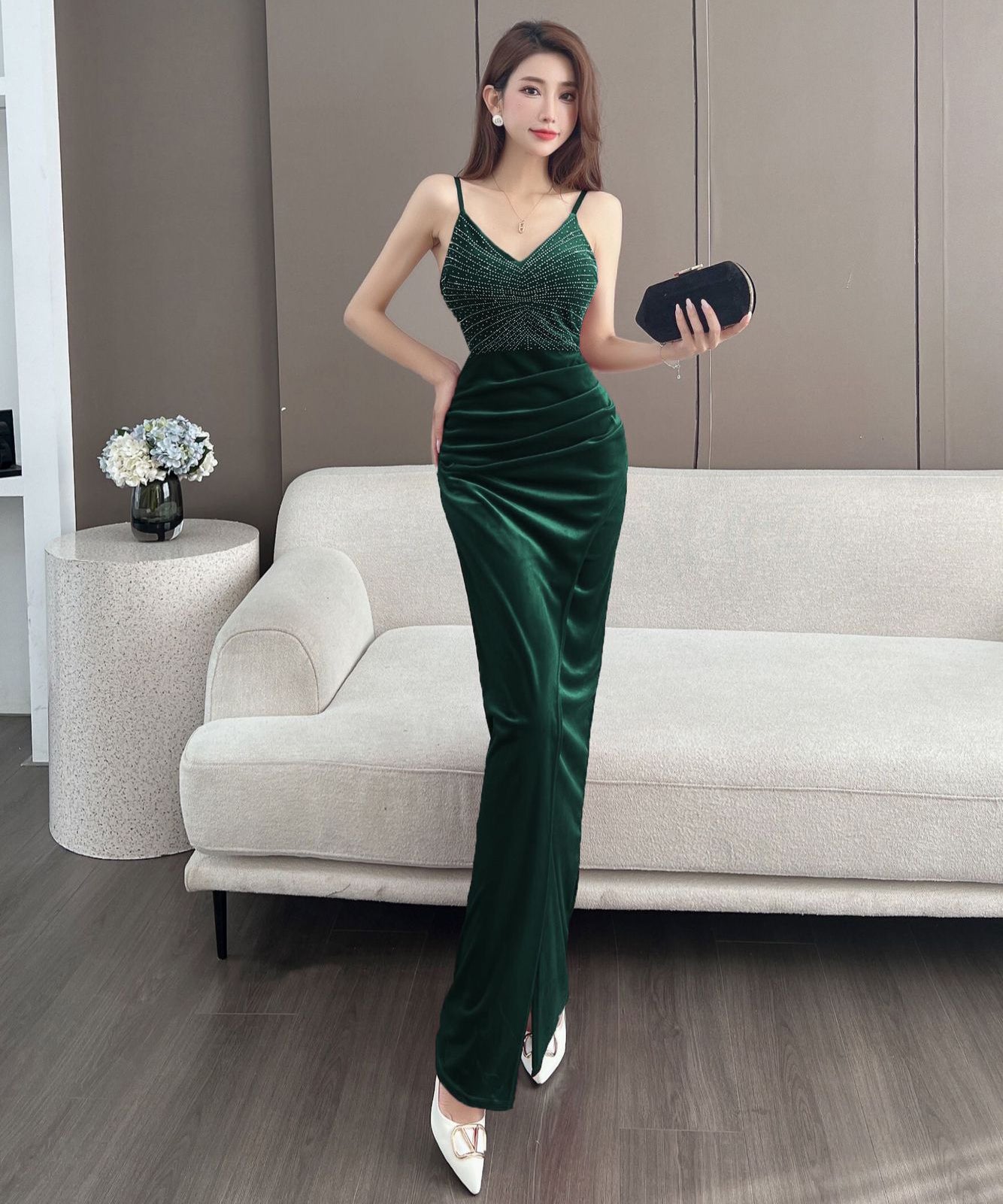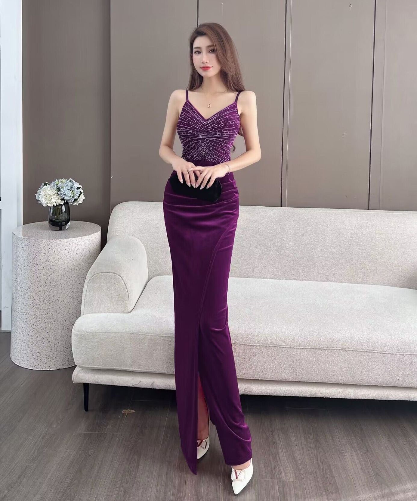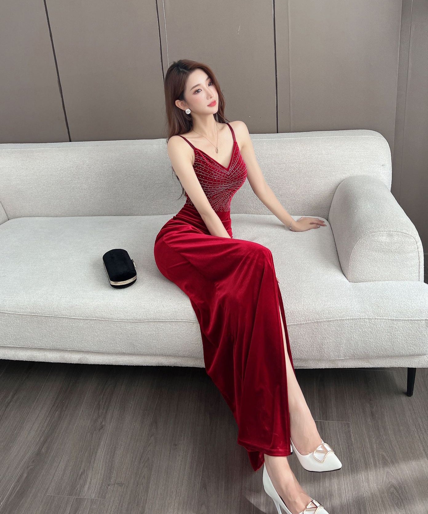 【4色】ロングドレス キャバドレス セクシー 韓国風 Vネック 細見え ベルベット キャミソール パーティー JC2-MLS7787611