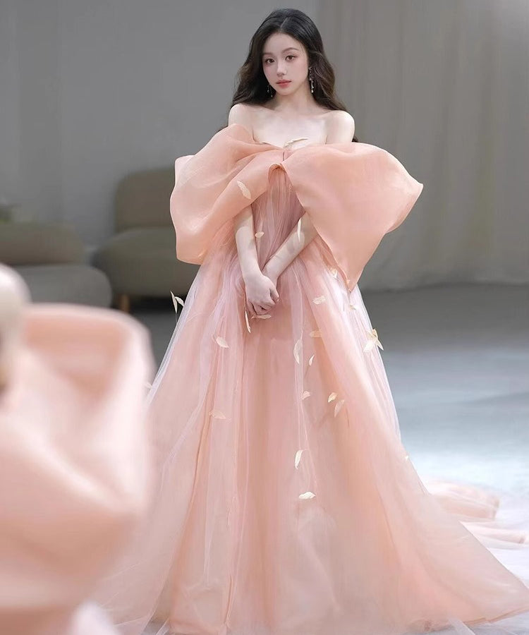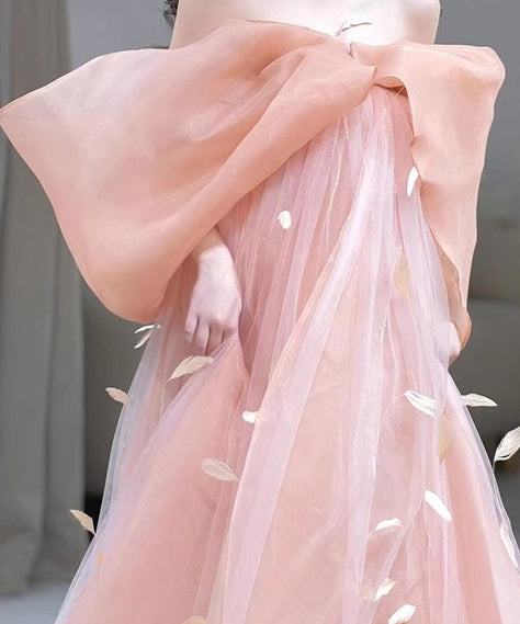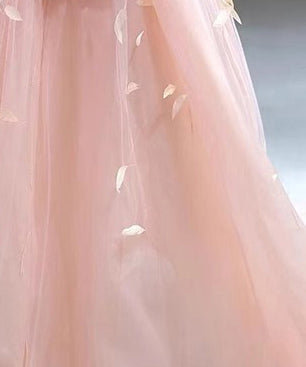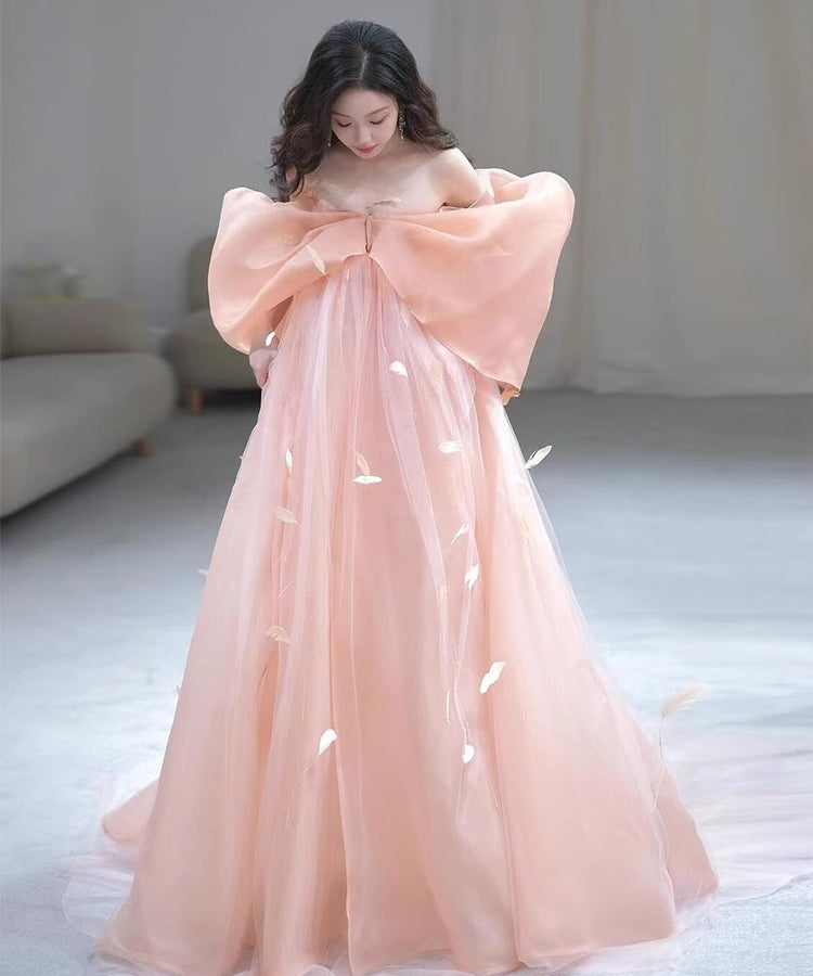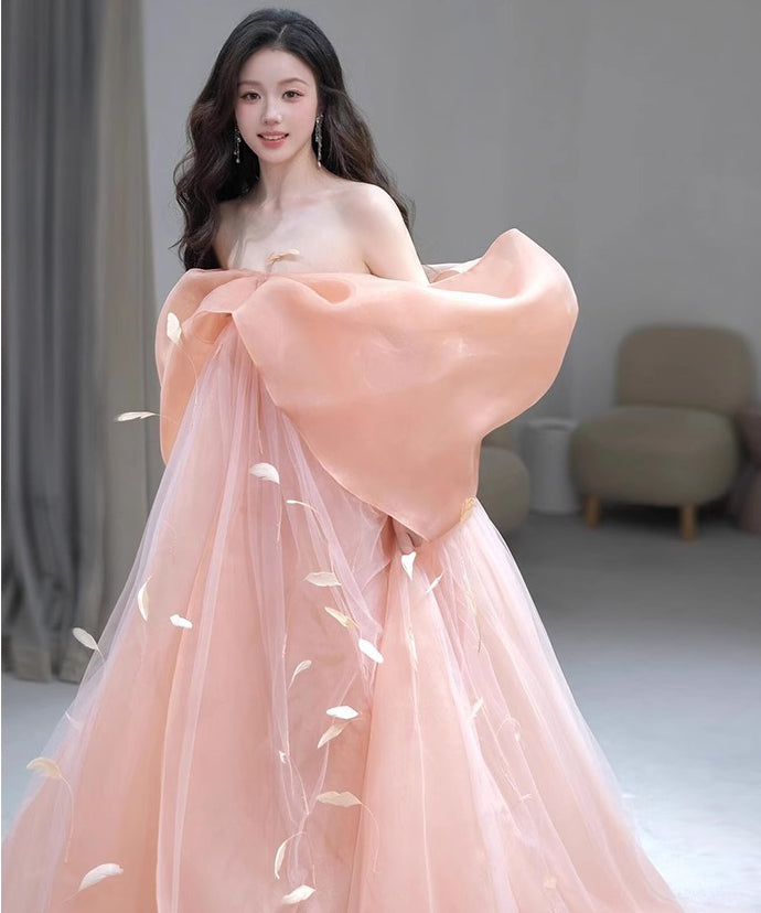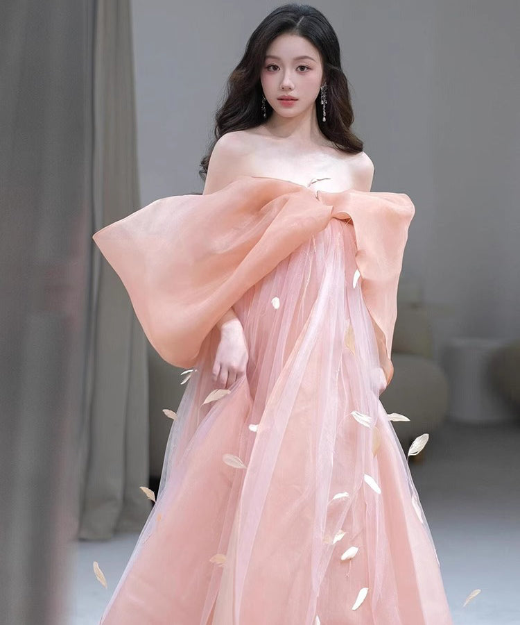 ロングドレス キャバドレス パーティードレス ピンク 羽根付き 蝶結び エレガント パーティー 誕生日 結婚式 披露宴 LW2-ZX219