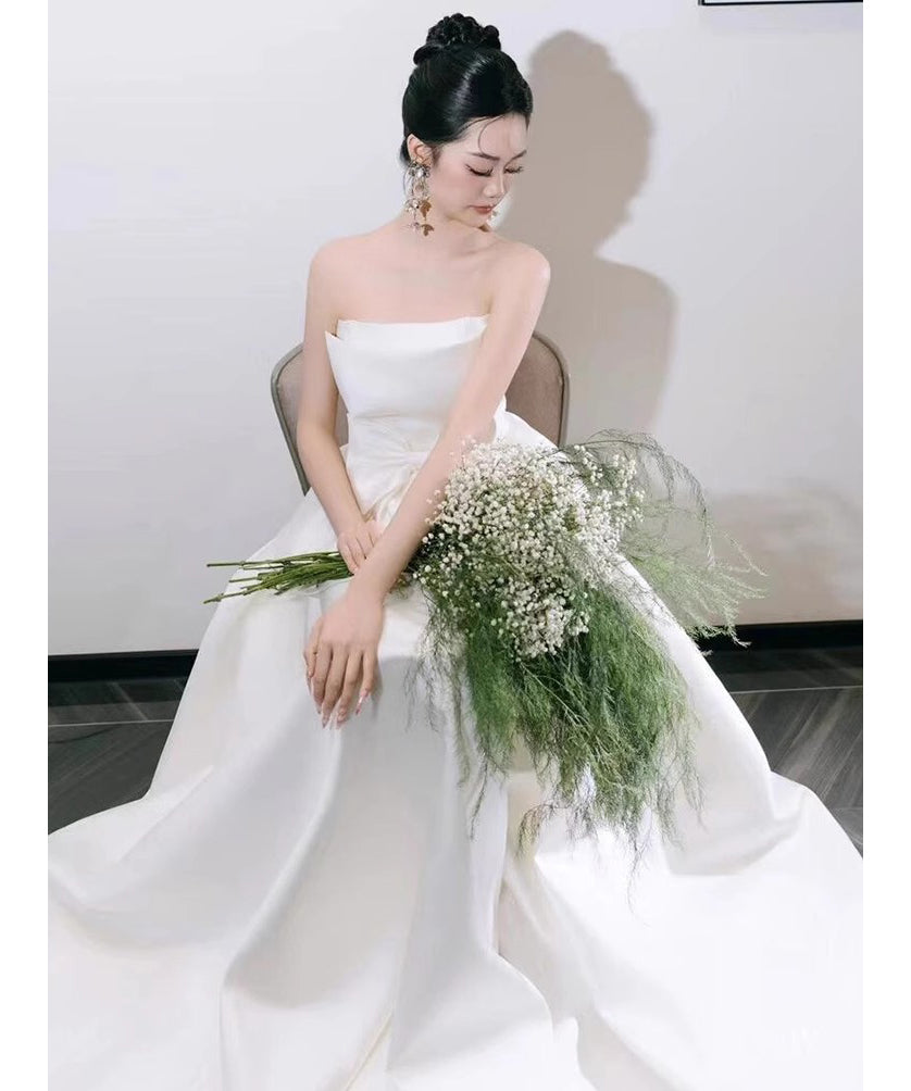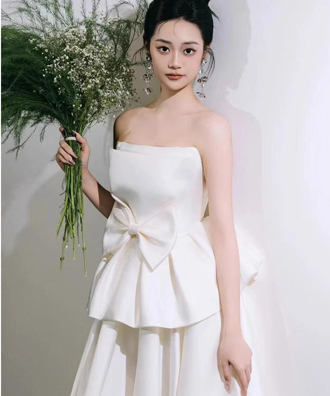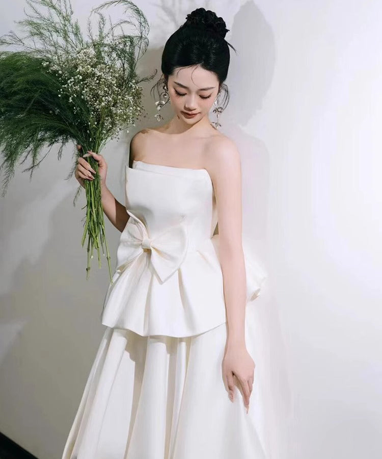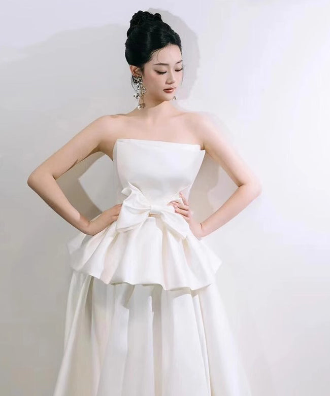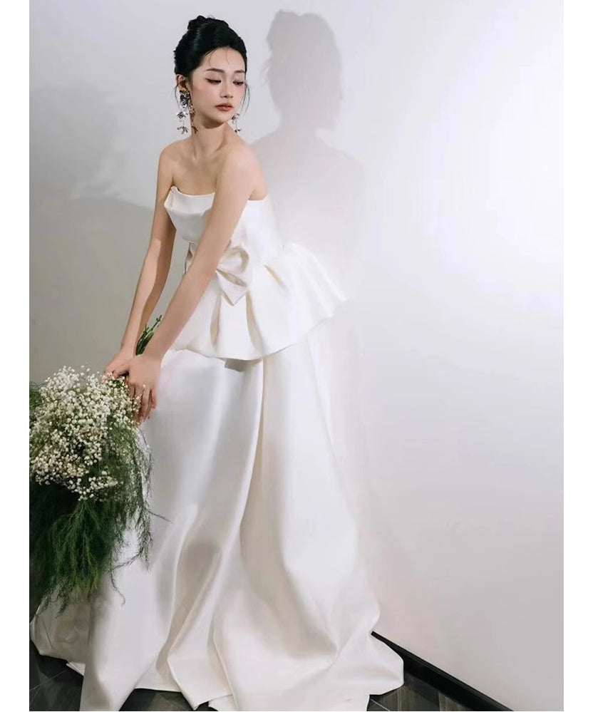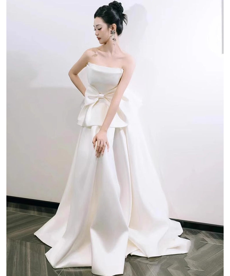 ロングドレス キャバドレス パーティードレス ベアトップ ミニマル サテン 上品 リボンディテール エンゲージ バースデー パーティー JC2-JSXA669