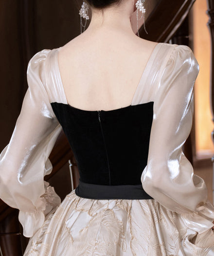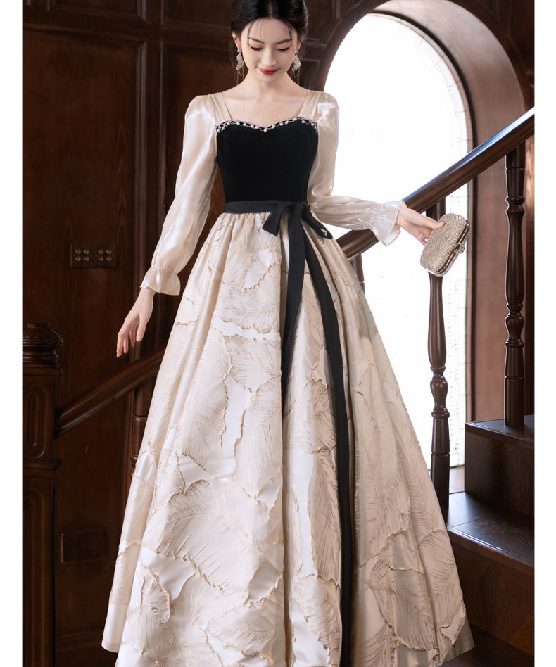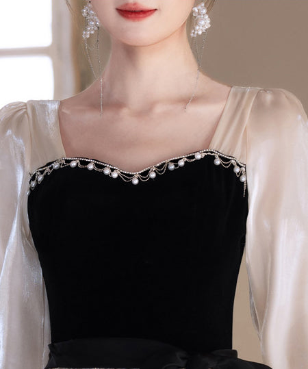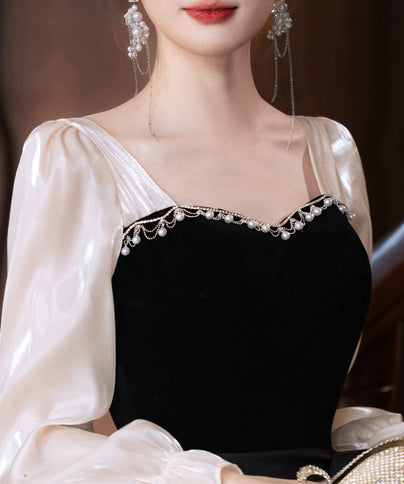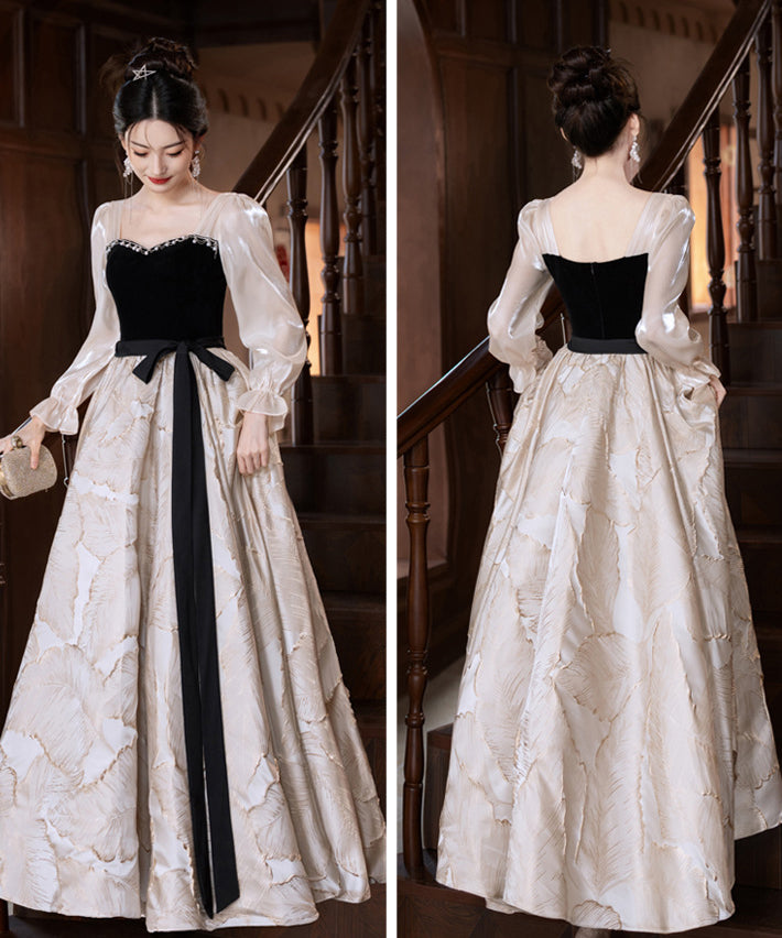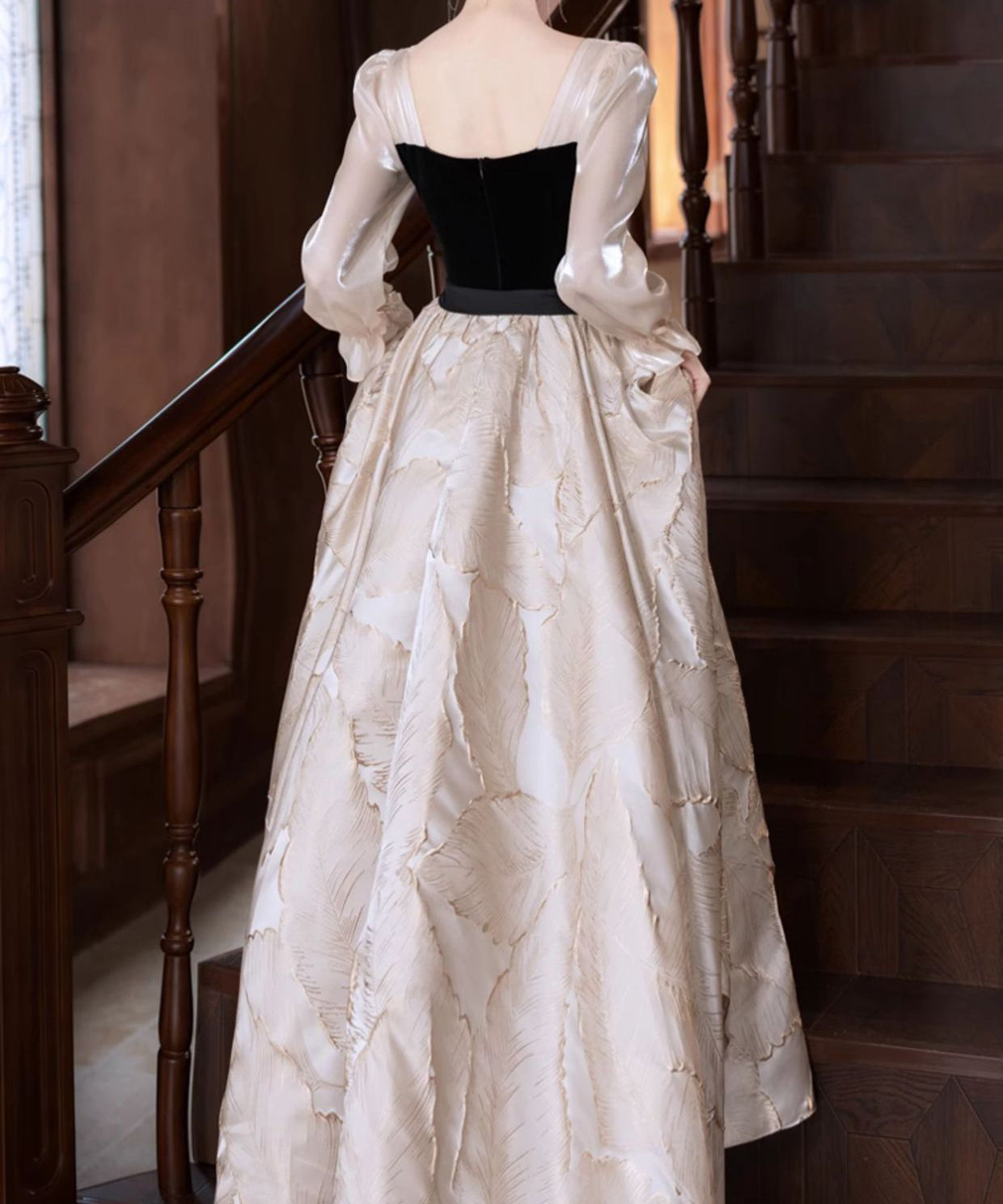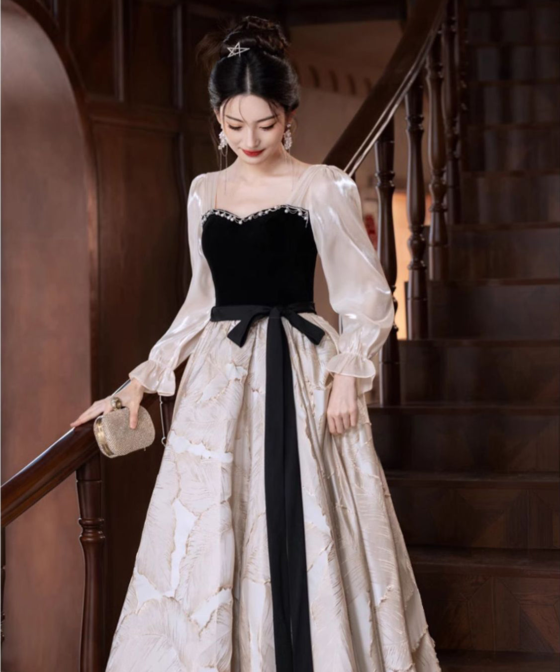ロングドレス キャバドレス パーティードレス ベロア スクエアネック 長袖 フレアデザイン 二次会 披露宴 パーティー LW2-YZX027