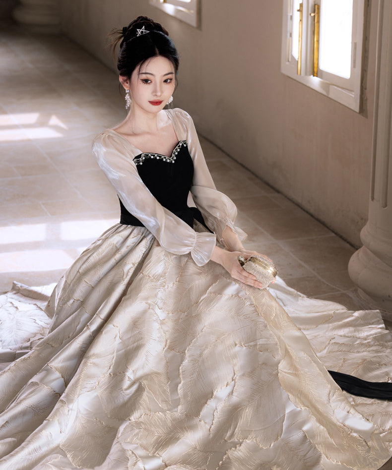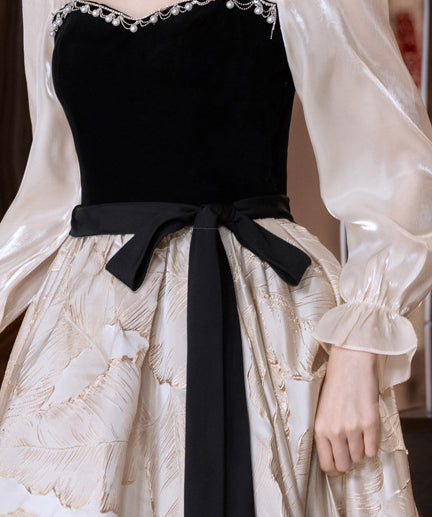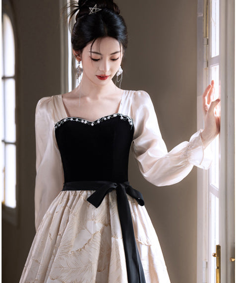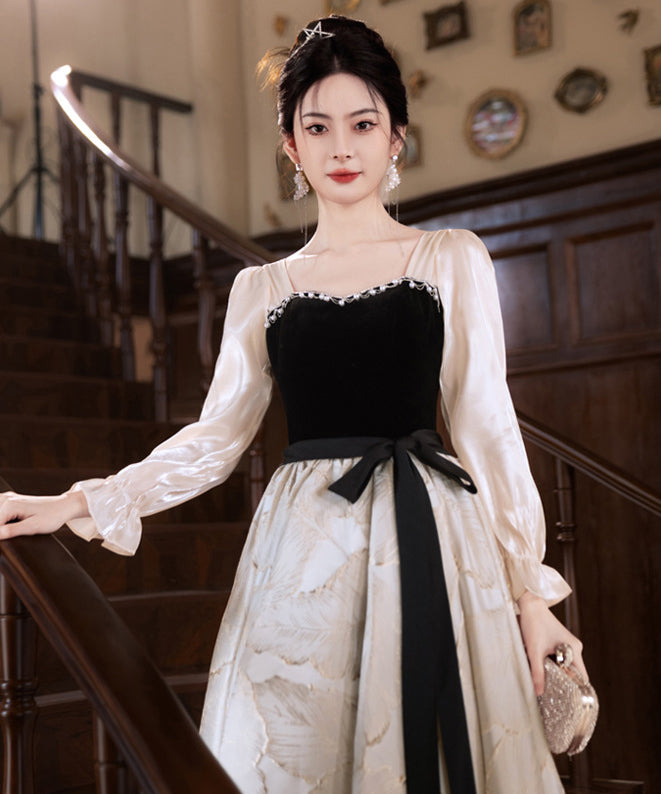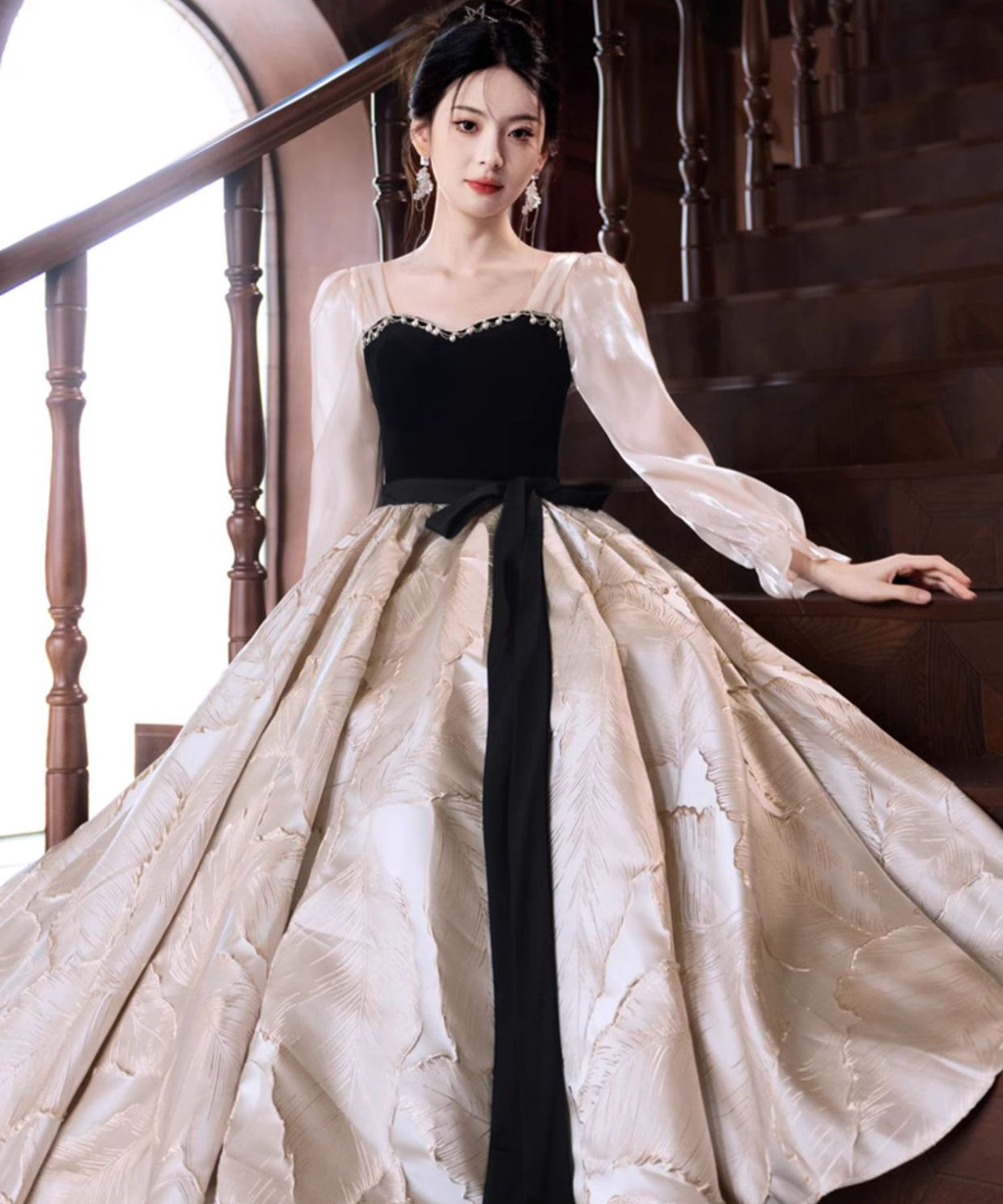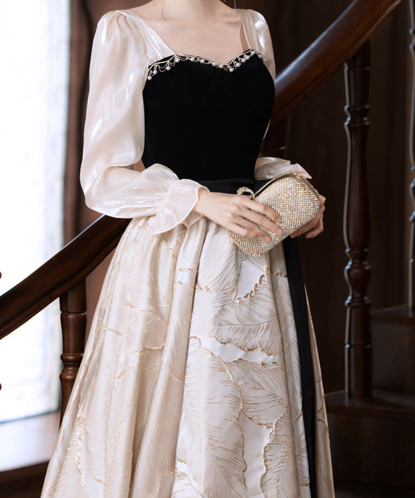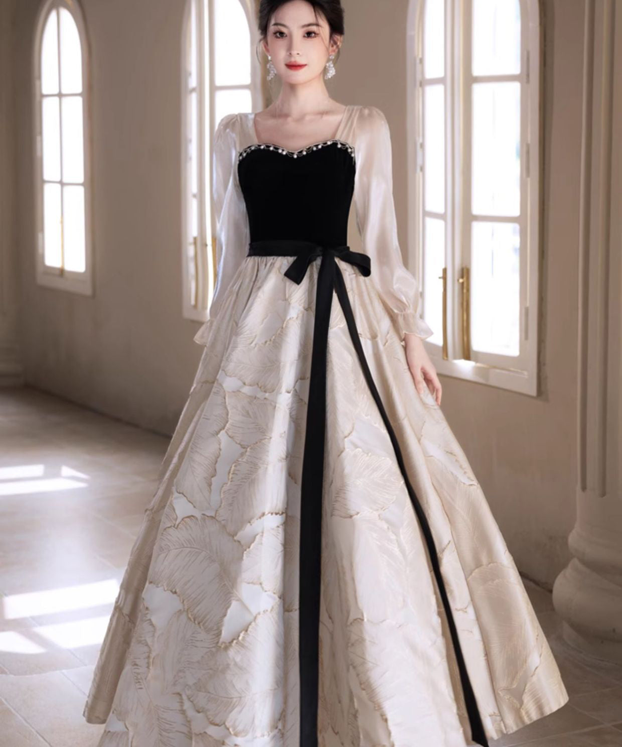 ロングドレス キャバドレス パーティードレス ベロア スクエアネック 長袖 フレアデザイン 二次会 披露宴 パーティー LW2-YZX027