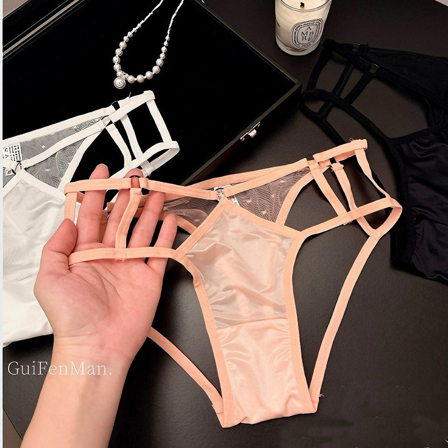 下着 サテンレース ショーツ 透け感 細ストラップ セクシー 三角ショーツ 綿100%のクロッチャー付き LW2-RS61-70d