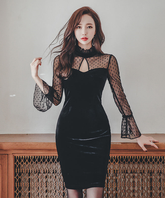 新作 秋 柔らかい セクシー レース 指名 着痩せ 高見え キャバドレス ミニドレス MY2141-MLS3635