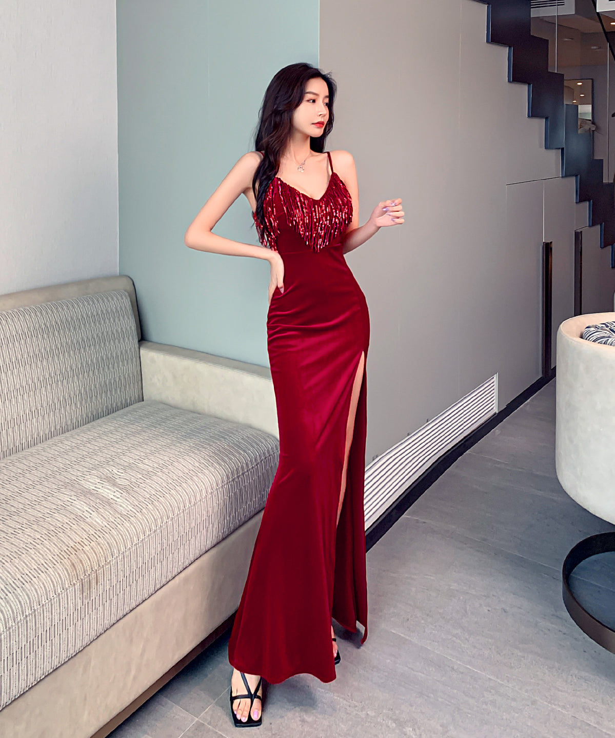 秋 新作 ベルベット 肌触りの良い 柔らかい セクシー 脚長効果 ロングドレス キャバドレス MY2143-MLS2964