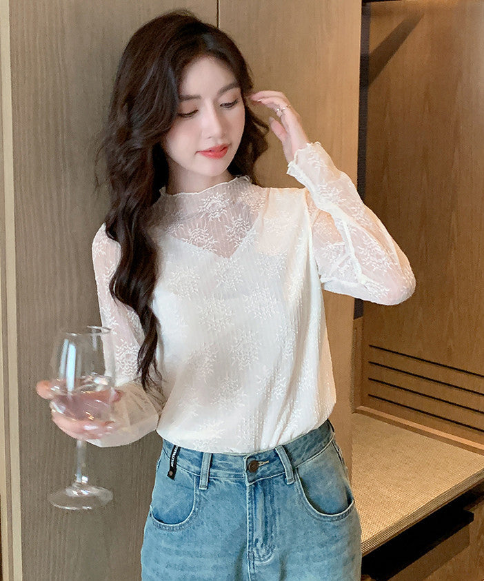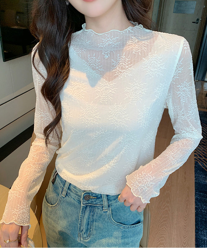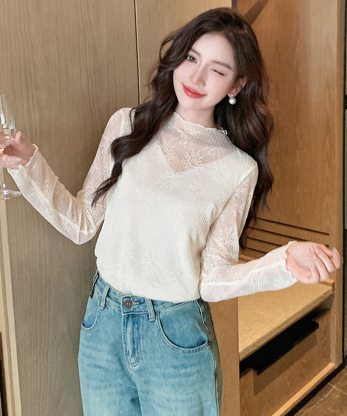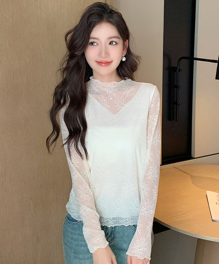 【2色】トップス レディース セクシー レースインナー 長袖 レーストップス シアー プラスサイズ デートコーデ 通勤 JC1-JW8896GT622