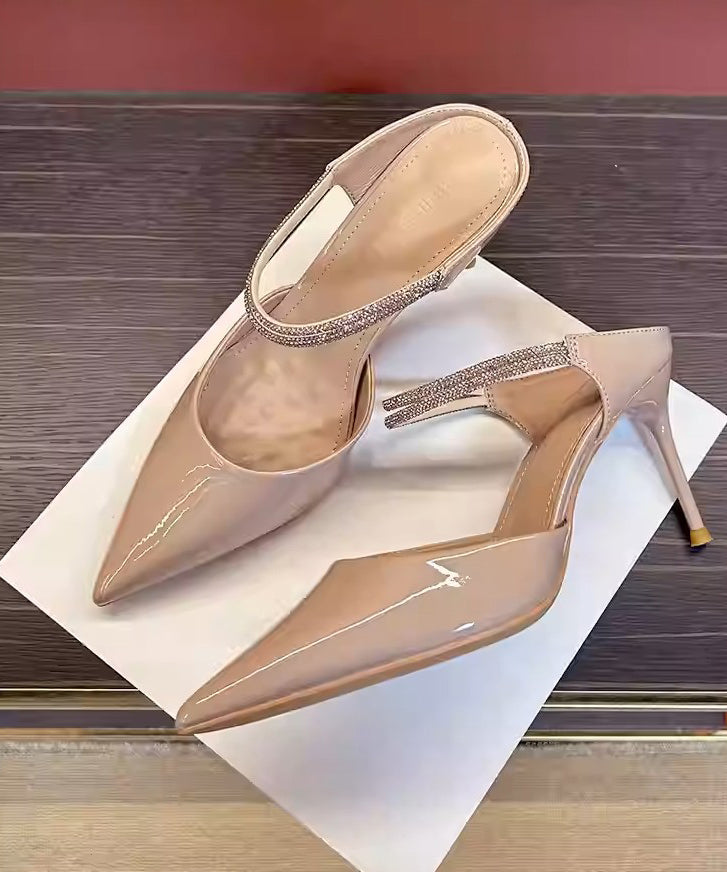 【2色】ハイヒール サンダル ポインテッドトゥ ビジュー付きストラップ ピンヒール クローズドトゥ デート お出かけ 出勤 JC5-FZ-MX-067