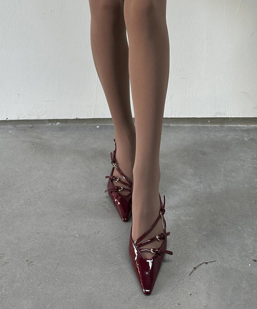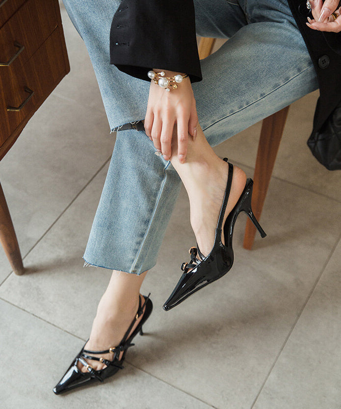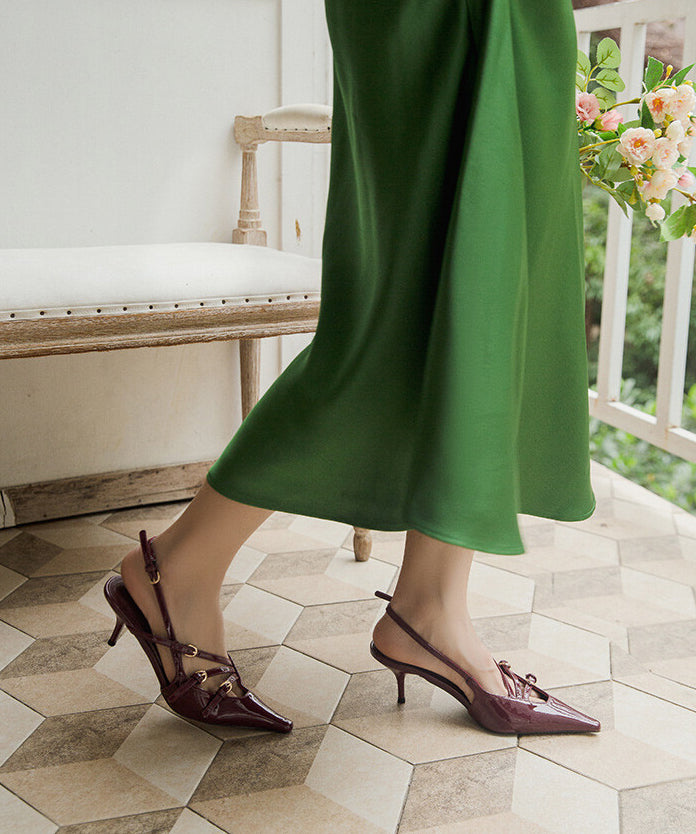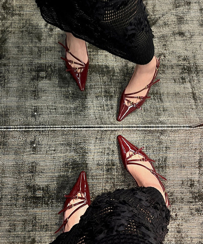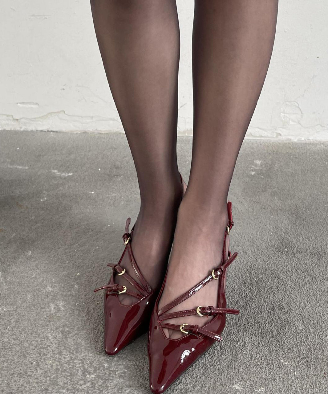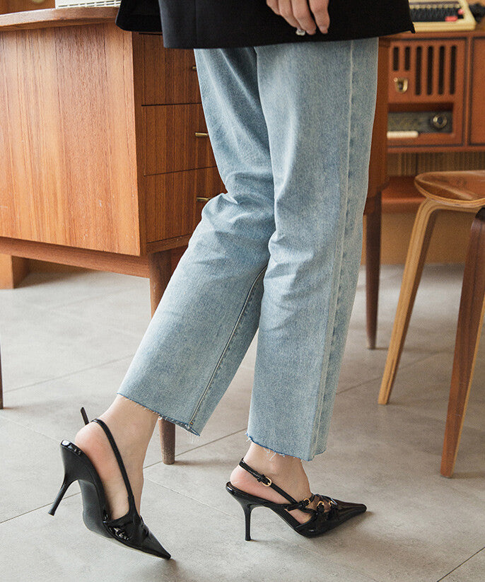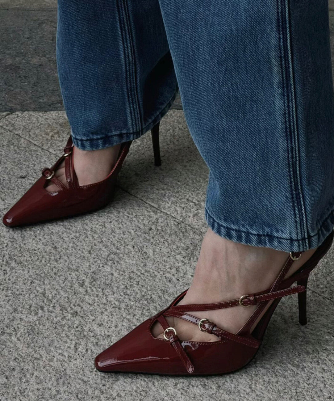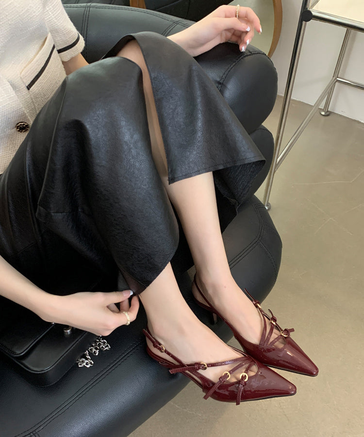 【2色】ハイヒール ポインテッドトゥ フレンチ ベルトバックル付き クローズドトゥサンダル レトロ エナメルハイヒール JC5-FZ-HC-5