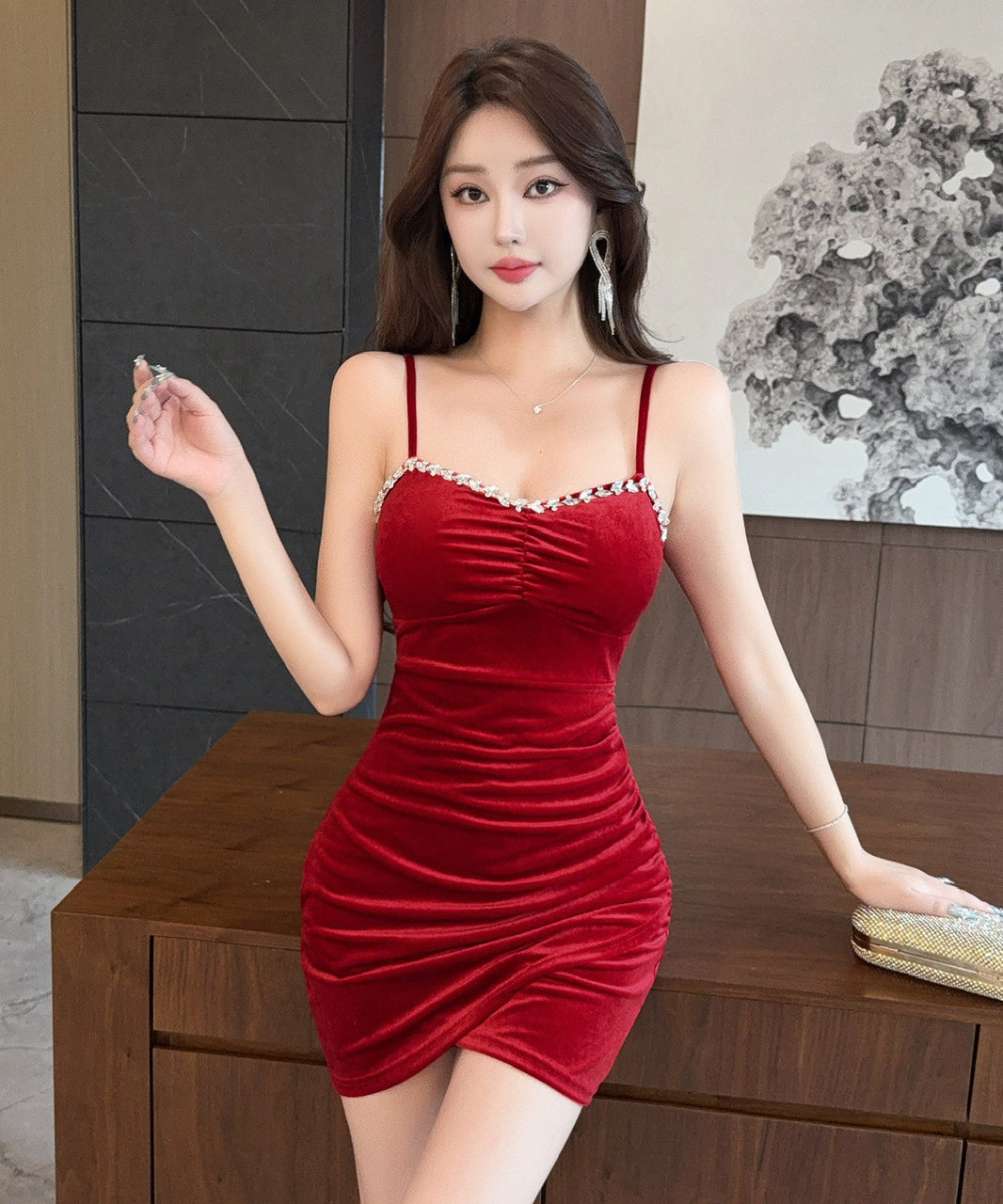 【2色】 ミニドレス キャバドレス セクシー 大人セクシー ベロア キャミソール タイトワンピース ウエストマーク LW2-DD5836