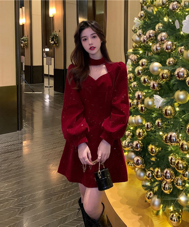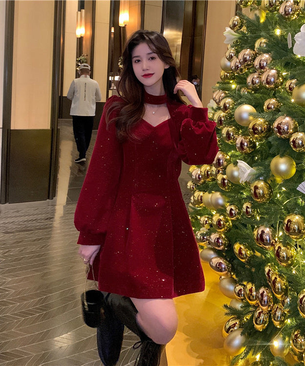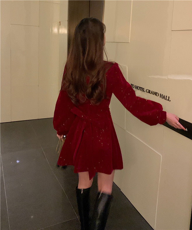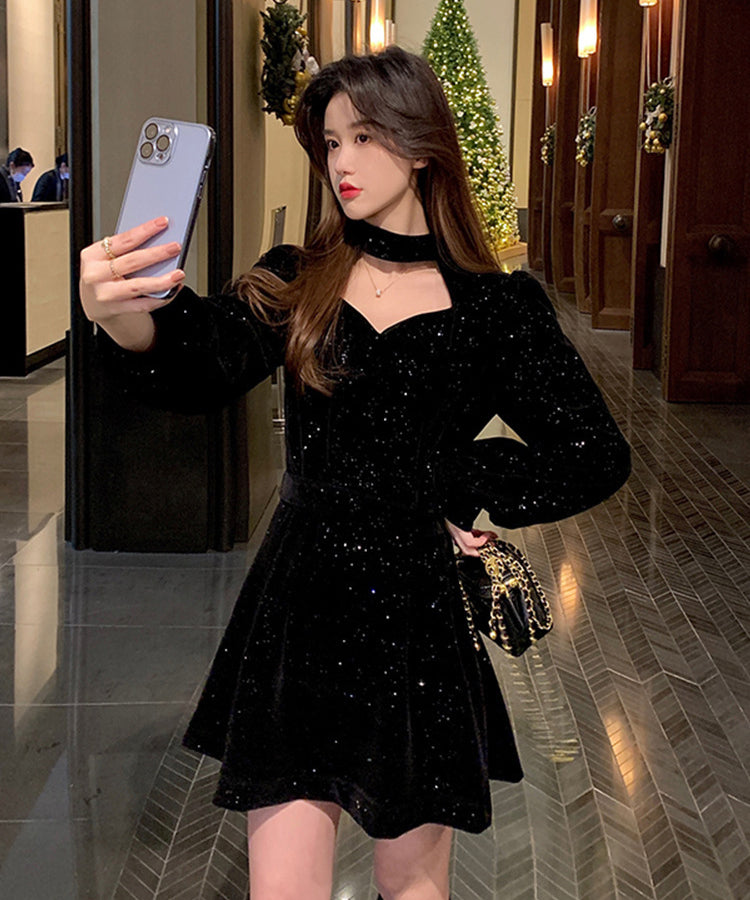 【2色】ミニドレス キャバドレス セクシー 韓国風 ツイード風 ツイード風 ウエストマーク スタイルアップ Aライン デート 成人式 JC2-MN219