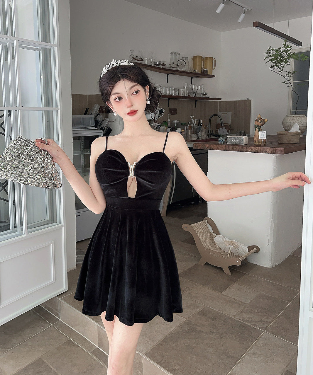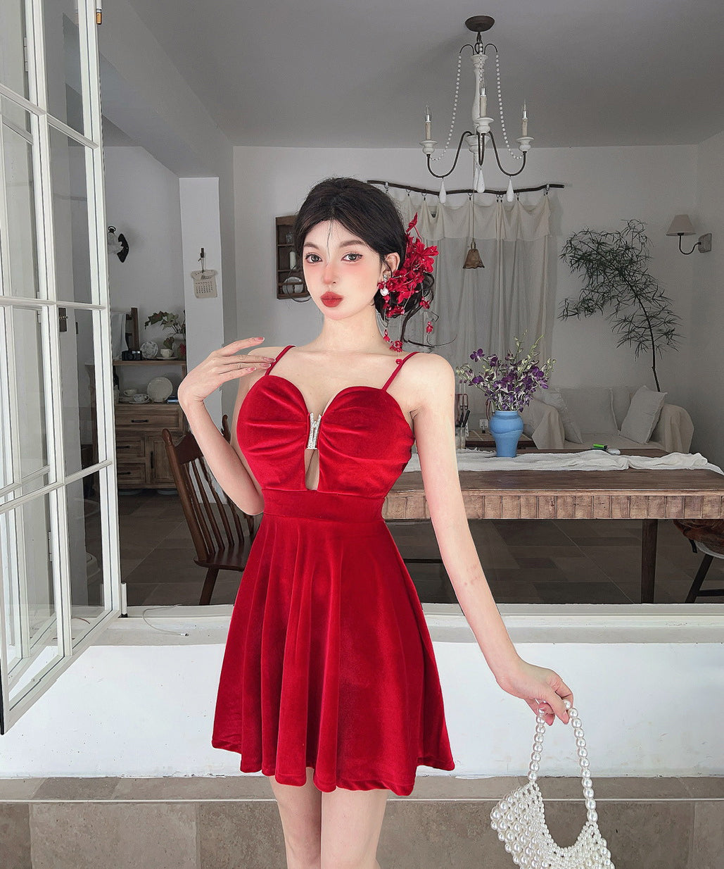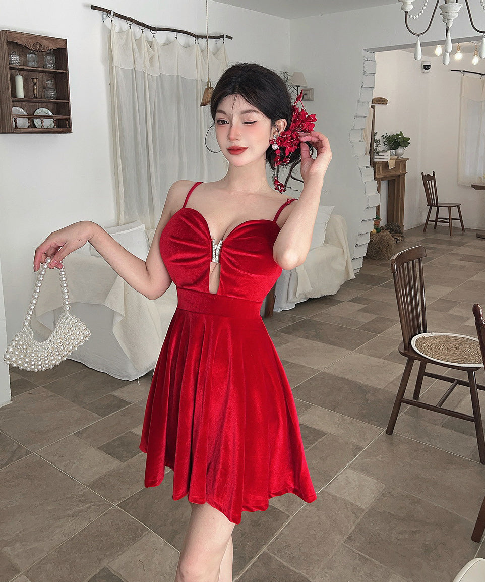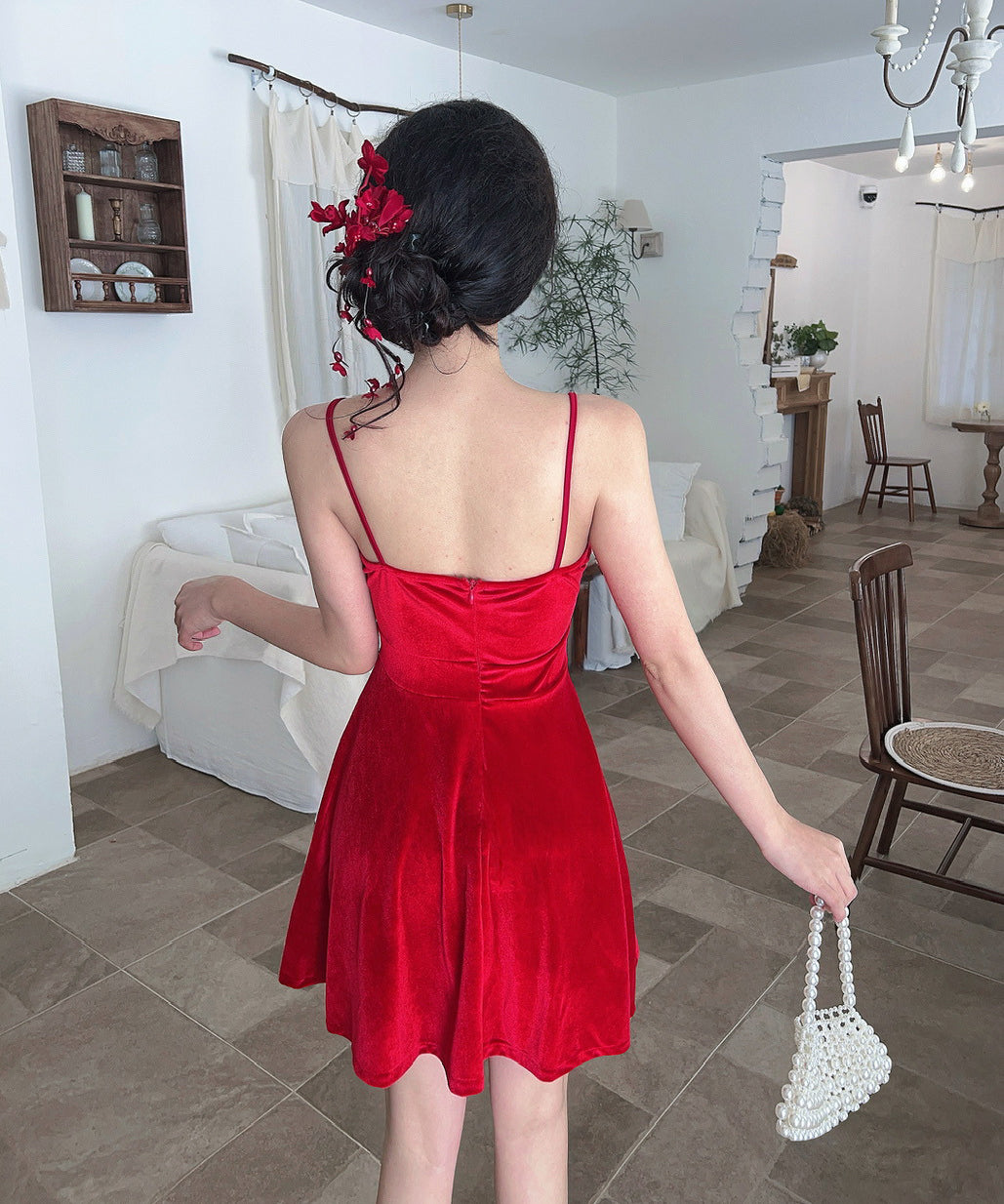 【2色】 ミニドレス キャバドレス セクシー 谷間魅せ Vネック ベルベット タイトキャミワンピース ウエストマーク パーティー 指名 LW2-DD5932